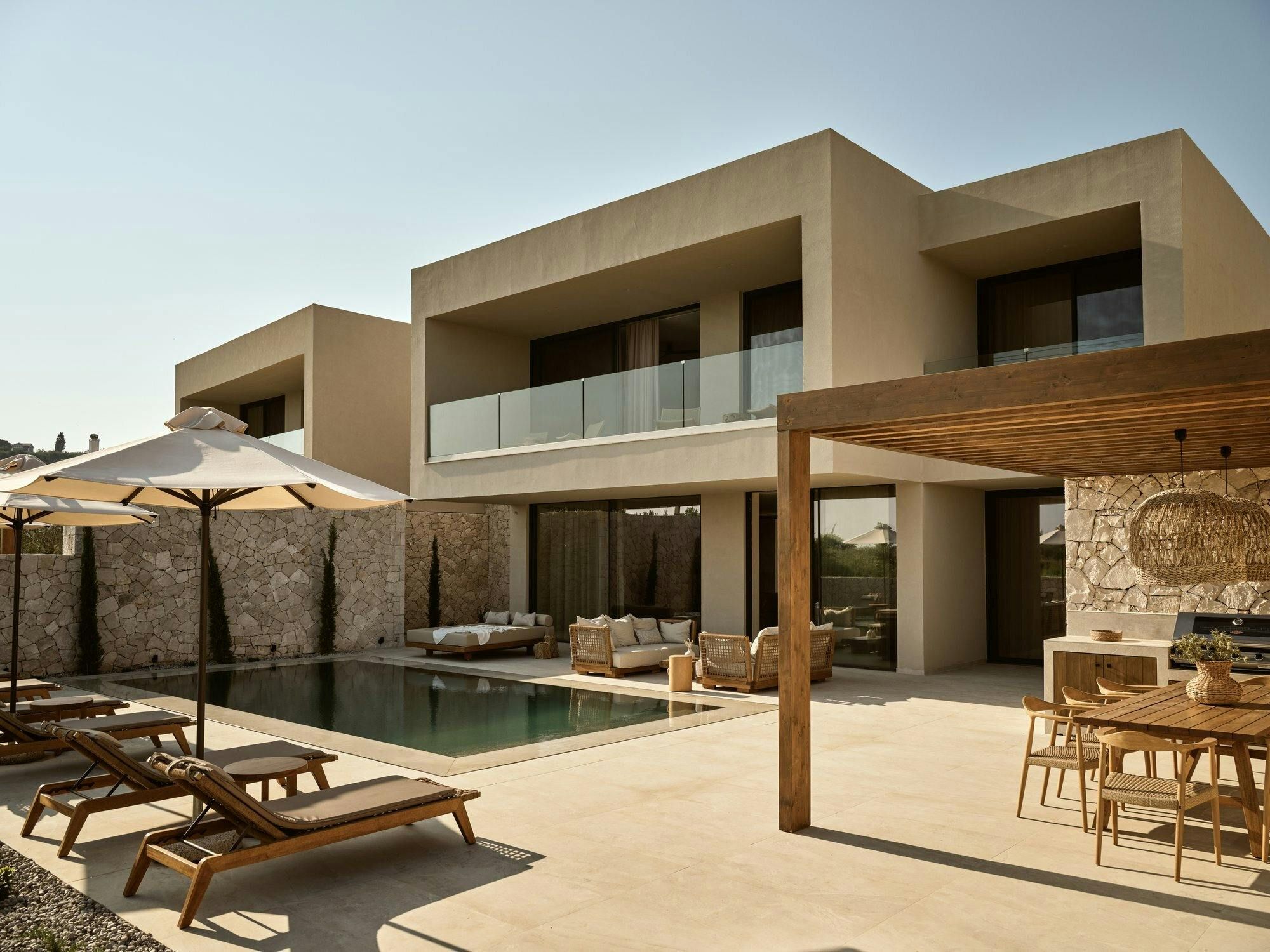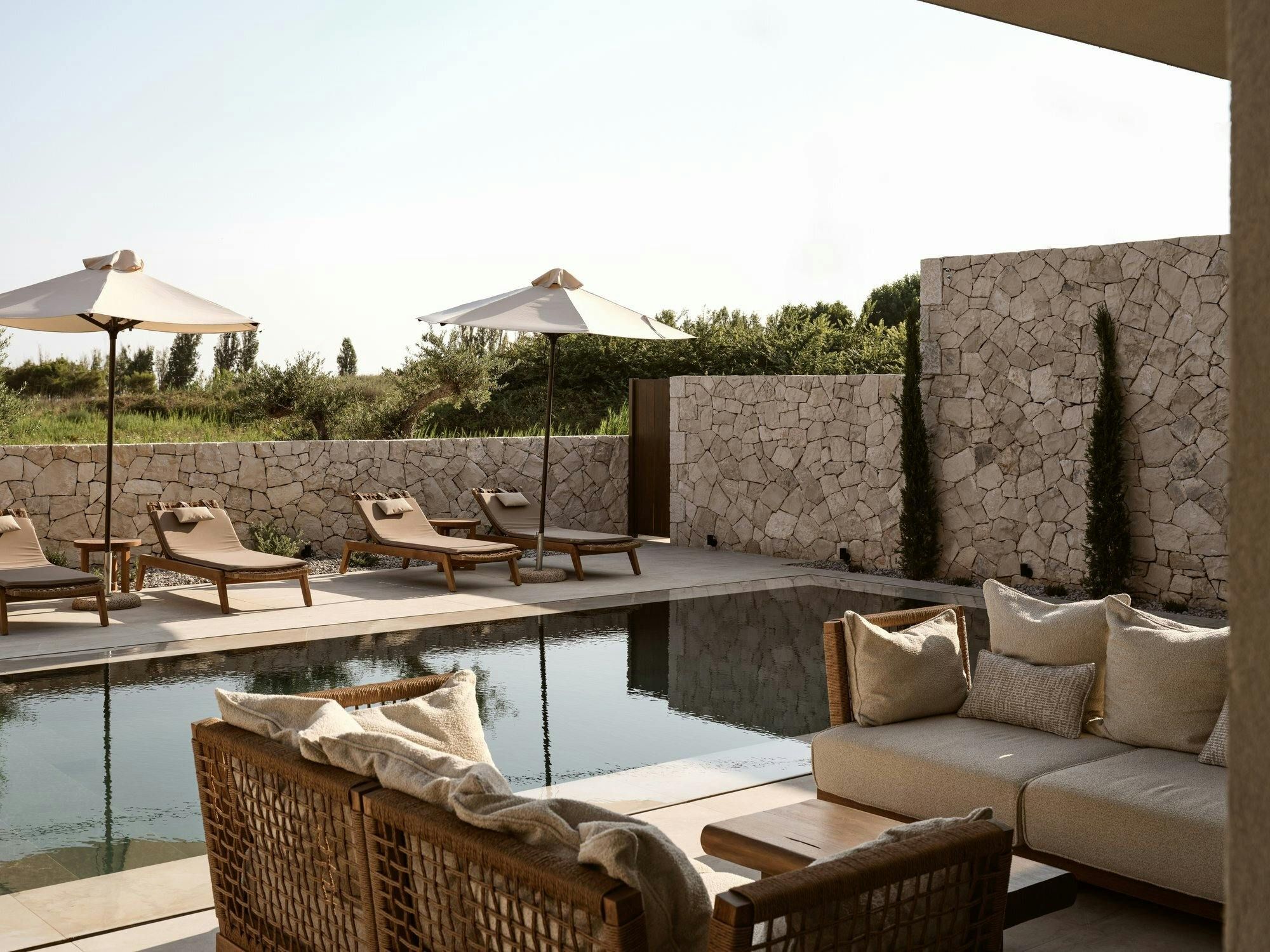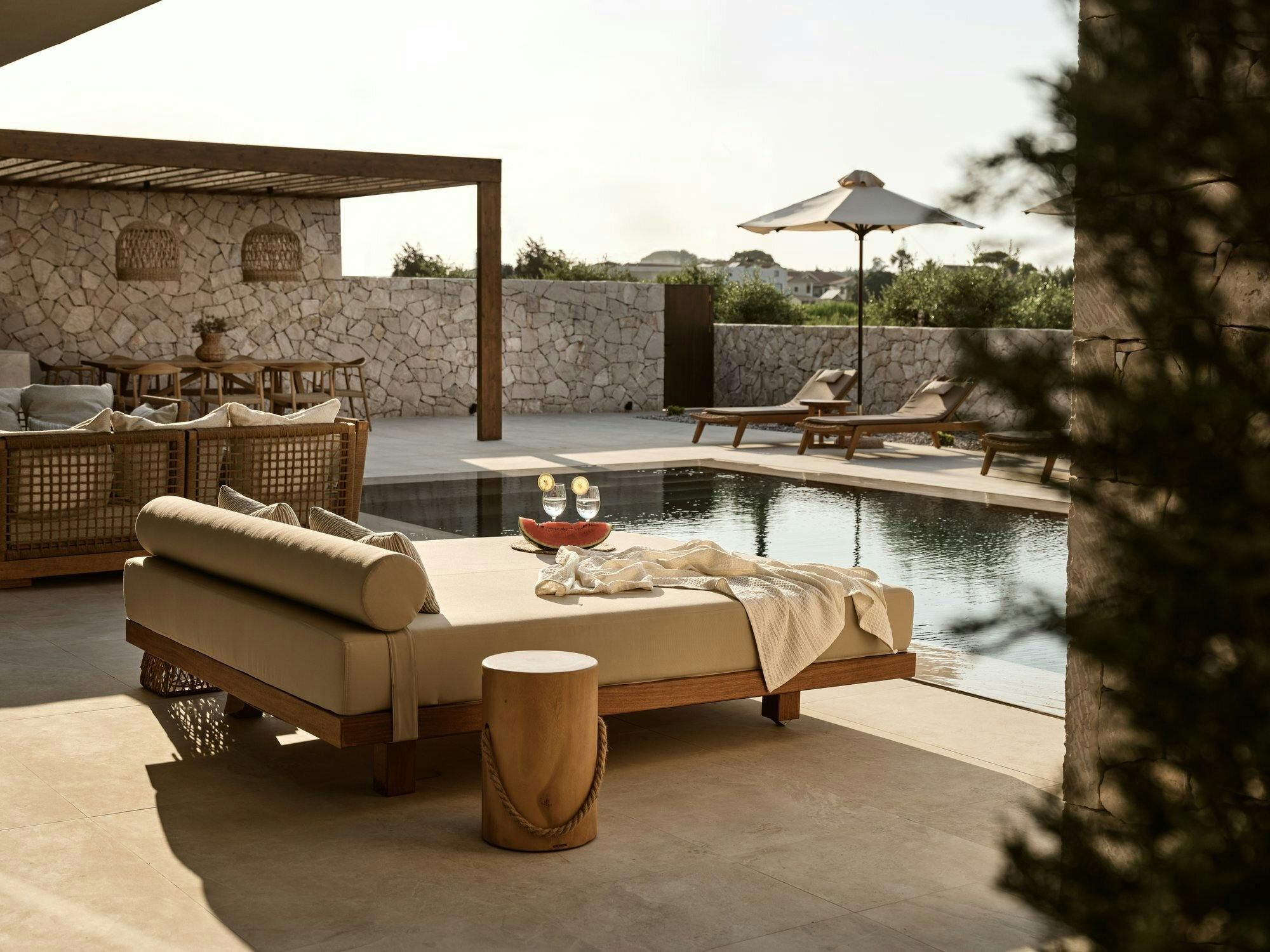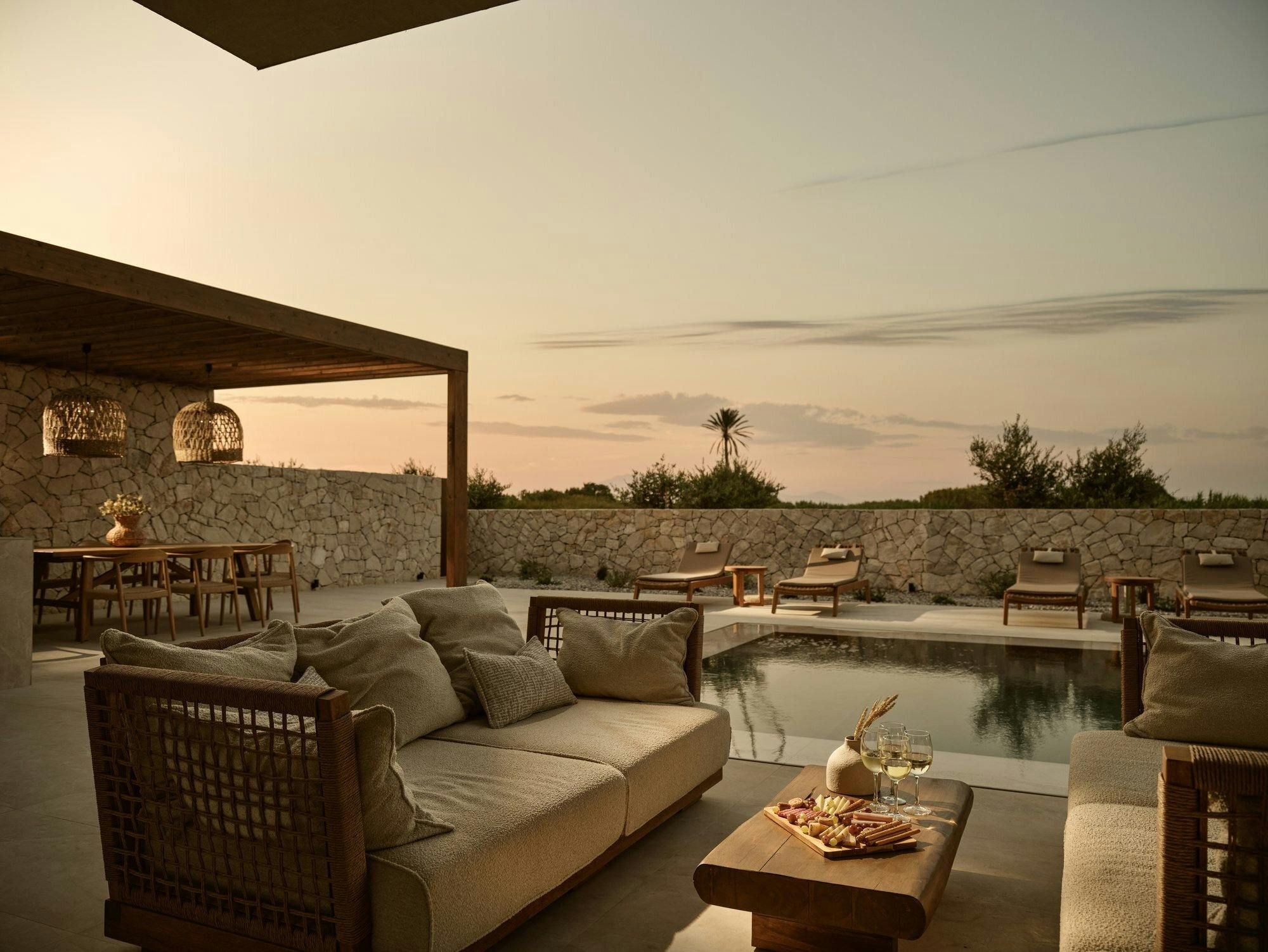 Surrounded by stone walls, this villa’s outdoor space includes a private swimming pool with a Jacuzzi, perfect for making the most of the Zante sun. There’s a pergola-shaded alfresco dining area, too, complete with barbecue, or dine inside, in the stylish open-plan living space. Plus, all the bedrooms here have en-suites – one has a freestanding bath, and a couple have sea views. Situated in the family-friendly resort of Tsilivi, you’ll be just 200 metres from the beach and tavernas, while Zante Town is just over 5 kilometres from this beautiful villa.