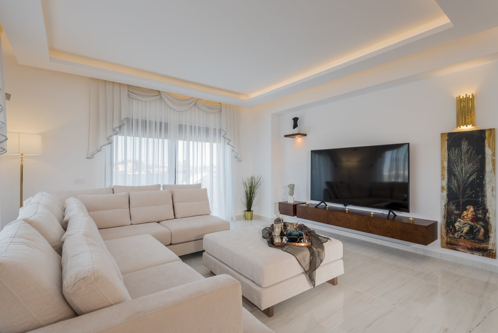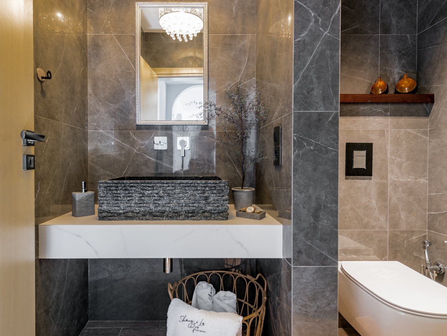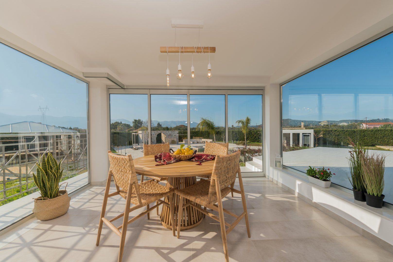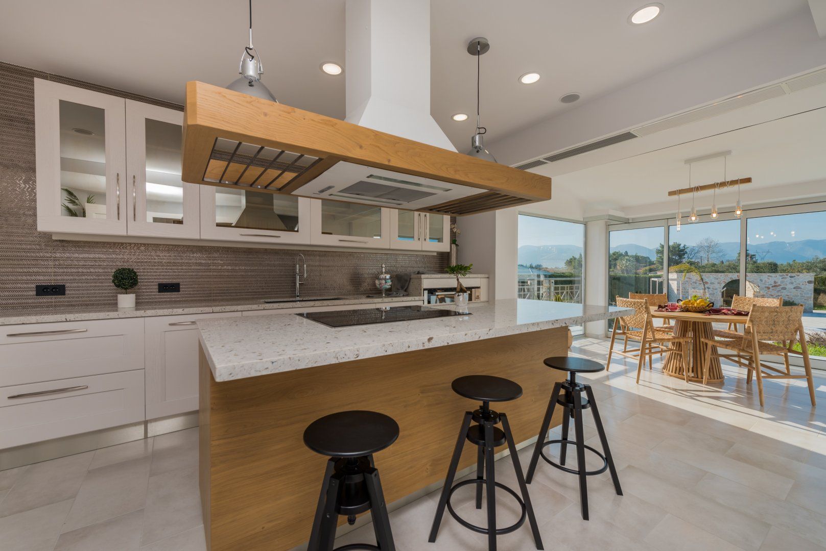 This is not just a villa, this is a full-on retreat. Set in the secluded Zakynthos countryside, it’s still only a few moments into Zakynthos Town (an eight-minute drive) where you’ll find buzzing bars, winding shopping streets and restaurants galore. The villa itself combines Greecian rusticana with old-world grandeur, with a touch of 21st-century modernity thrown in. It’s set like a manor in sprawling grounds where you’ll find a huge free-form swimming pool with a sunken fire pit in the middle, a full outdoor kitchen under cover, terrace dining for the whole group and even a cabana-style massage room. That’s not to mention the myriad loungers and outdoor sofas spread across patios and lawns. There’s no denying the interior is grand – a huge chandelier lights the double-height lounge, the master bathroom has golden fixtures and plush bedrooms are illuminated by candelabra. Apart from the leisure spots – a gourmet kitchen with a sunny breakfast spot, long dining table for big festive gatherings and state-of-the-art entertaining sitting rooms – there’s an executive-style office area on the mezzanine with everything you need to work remotely. On top of all this, a 24-hour concierge service is available to book yacht charters, island tours, in-villa massages and a private chef if you want to be truly pampered.