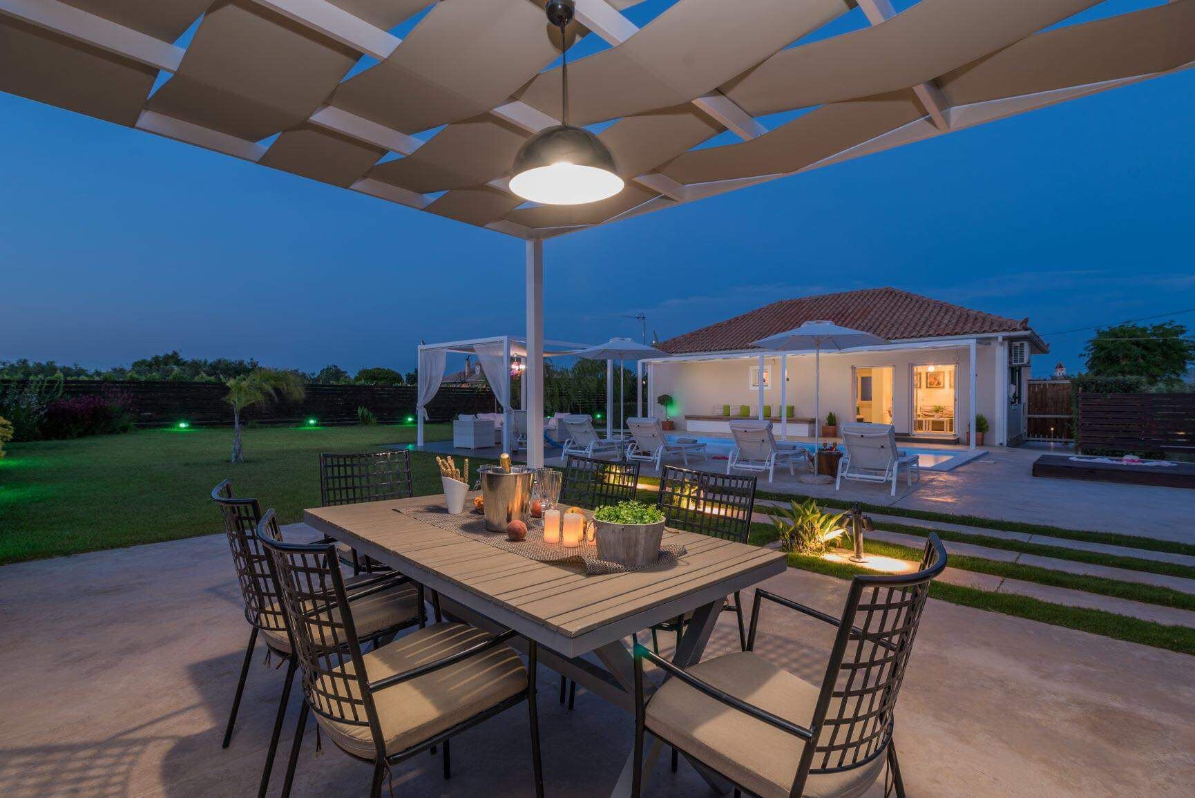 Surrounded by vineyards, this home ticks the box on tranquillity, but just because it’s secluded doesn’t mean it's boring. You’ll find the town centre and its buzzing nightlife only a short drive away, and you can spend the next day rehydrating in the shade of a beach umbrella on Tsilivi. Or, if it’s caffeine you need, take a short stroll to one of several coffee shops and bakeries nearby. Although spacious enough, the house isn’t large, so when you need a little extra breathing room, venture into the garden or open the bifold doors separating the living room from the swimming pool for fresh air.
