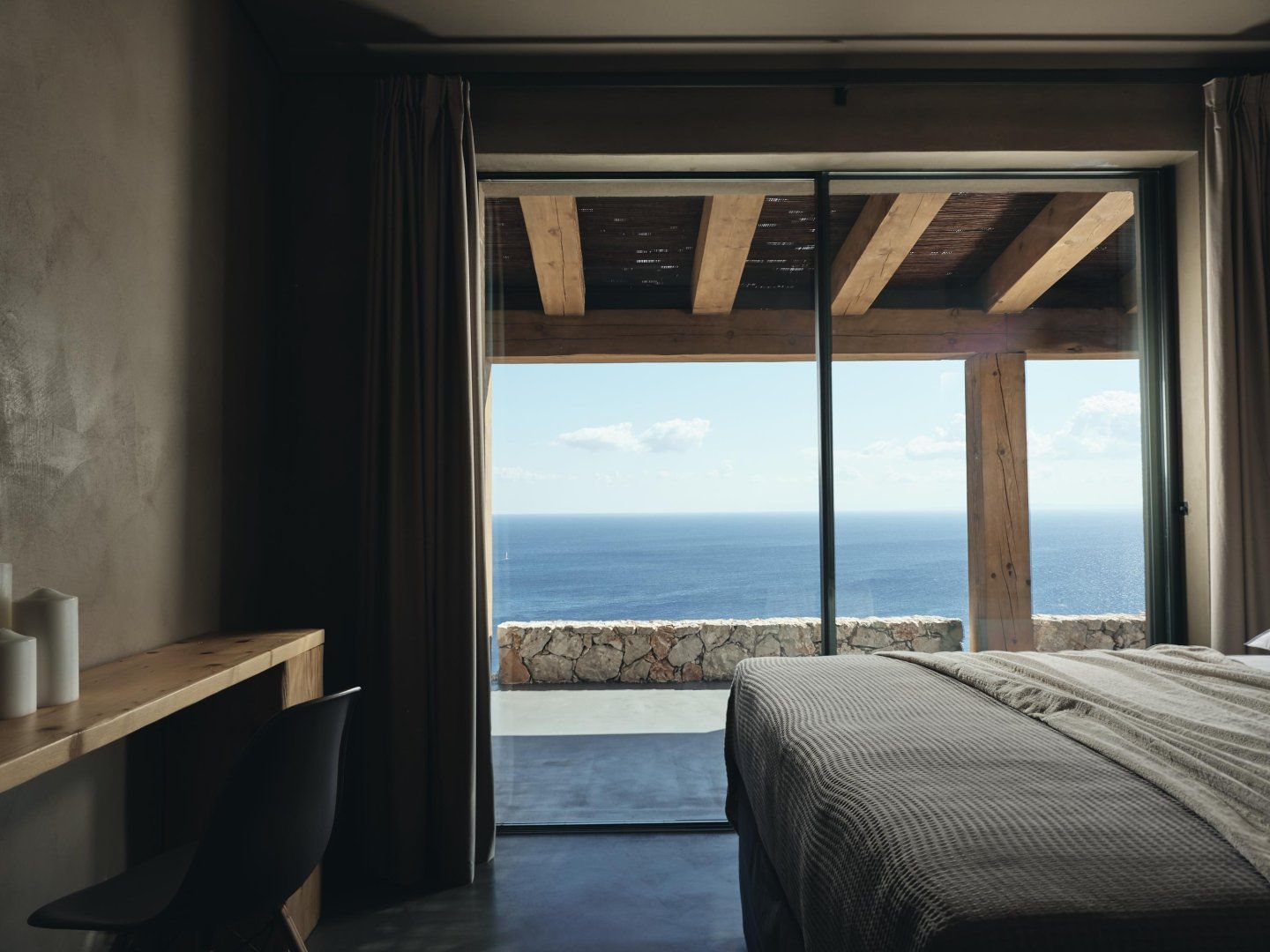There's a distinct air of tranquility here, thanks to the natural materials used, reflecting the landscapes outside. You'll love waking up and admiring the sea views as you sip your morning coffee in bed, before grabbing a book to read as you soak up the Greek sunshine. When the temperature rises, head for the swimming pool and take a refreshing dip. And, as evening rolls around, you can gather your guests on the patio for an alfresco feast fresh from the barbeque.