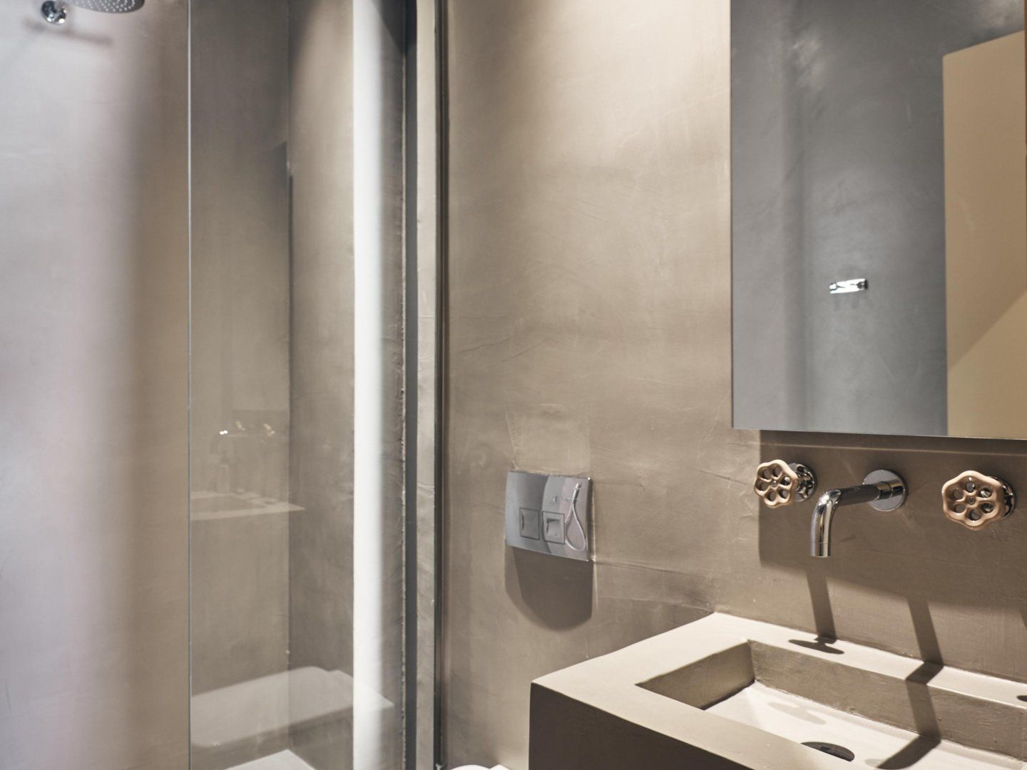We love the way the glass sliding doors merge the indoors and outdoor areas, with minimalist and modern furniture allowing the sea view to be the main attraction. Stony grey concrete and rich wooden cabinets continue the natural feel throughout the living spaces β and if you really want to take an natural approach to life, why not freshen up in the outdoor shower.