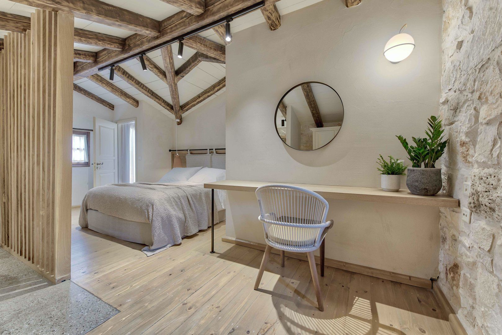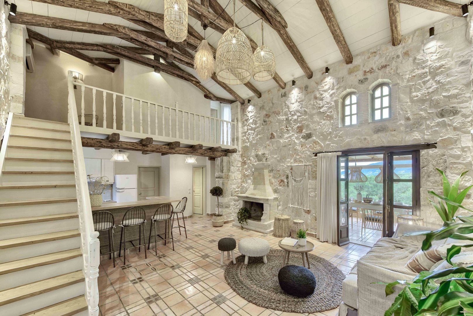 With its oatmeal tones, lightweight linens, a perfectly positioned hot tub and a swimming pool surrounded by olive trees, this rustic villa is ideal for a family or group of friends looking to kick back and seriously relax.