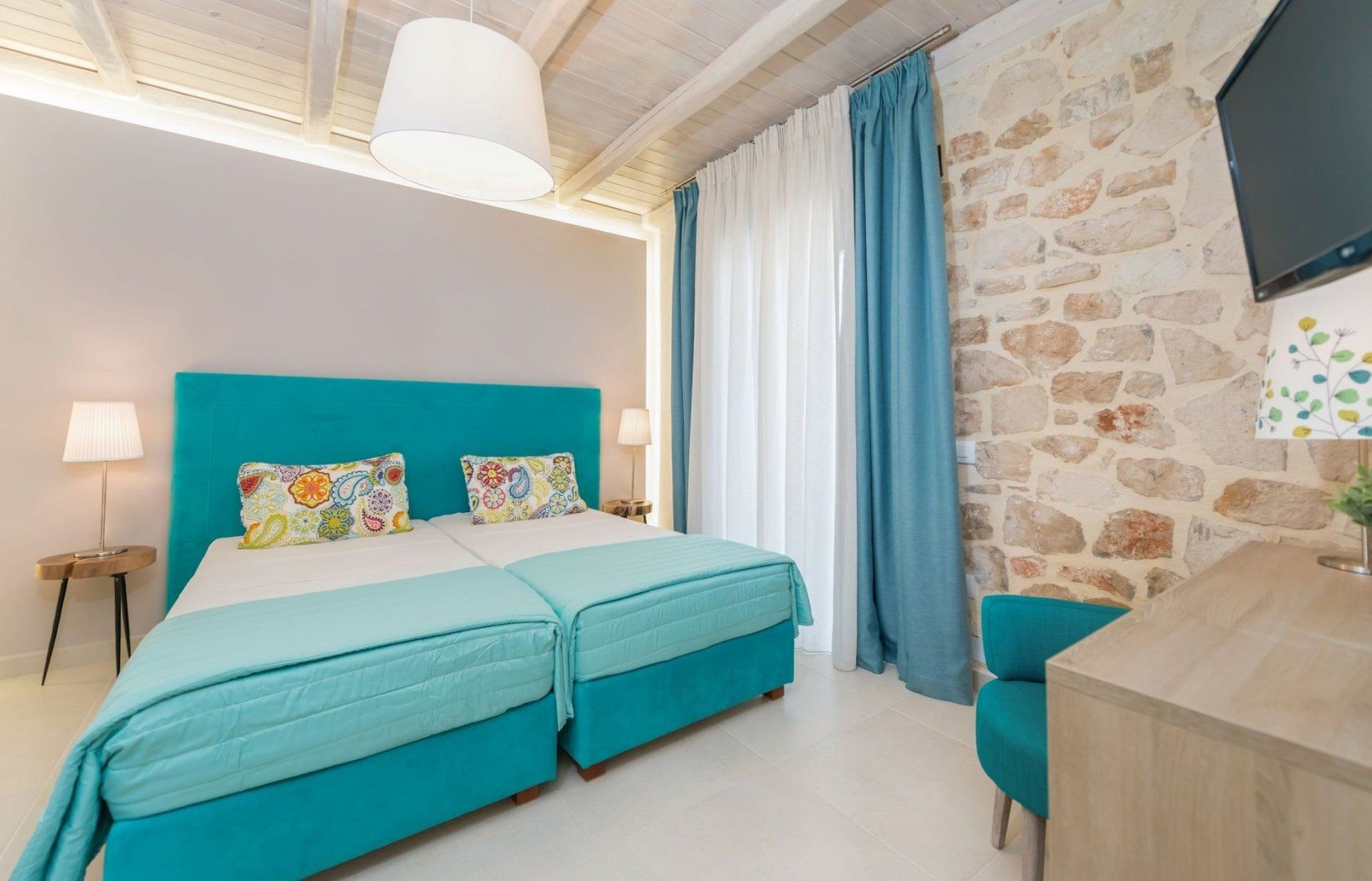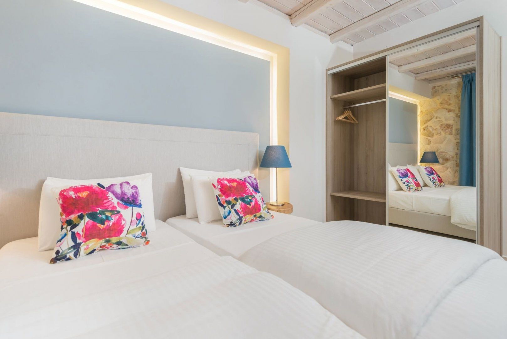 Inside, it's a comfortable and surprisingly modern space with room for four in the two bedrooms – and sofa beds for a further two in the living room. There's a well kitted-out kitchen and smart, fresh decor. Within easy reach of all the island's best beaches and tourist spots, yet inland enough to feel remote and peaceful, it's a great choice.