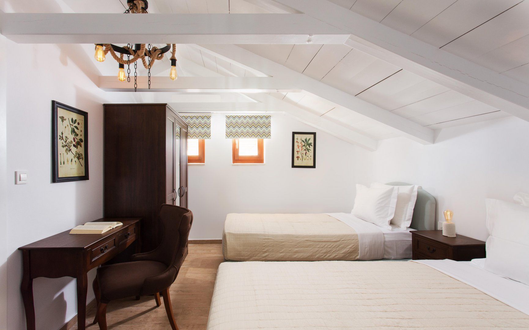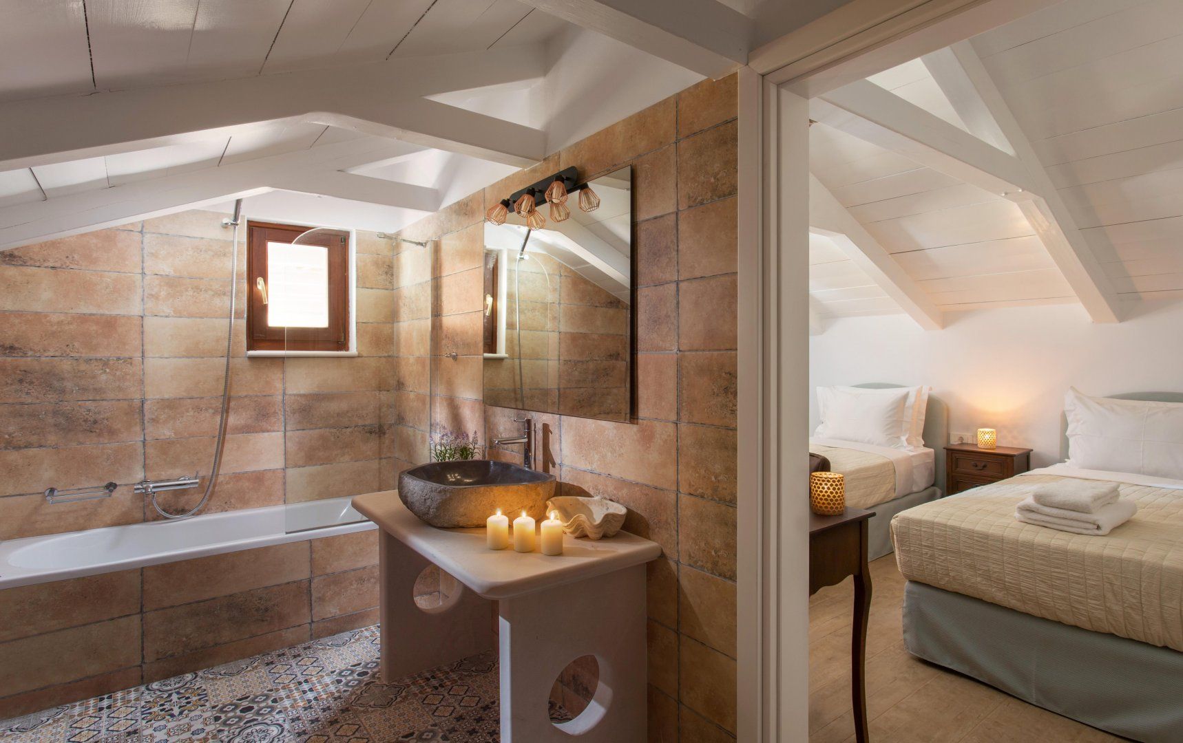 Nestled in a valley of vineyards and olive groves, this tranquil country house estate, just a ten-minute drive away from Tsilivi Beach, offers an authentic taste of Zakynthos. It is set in the historic village of Agios Kyrykos, which boasts strong ties to some of the island's best wineries. The estate itself also has an impressive wine heritage, having harvested one of the most popular grape varieties within the region for the best part of two centuries. We recommend popping by the village for a bottle of the good stuff, best enjoyed perched by the pool at sunset, glass in hand, gazing out to the fruit trees kissing the horizon.