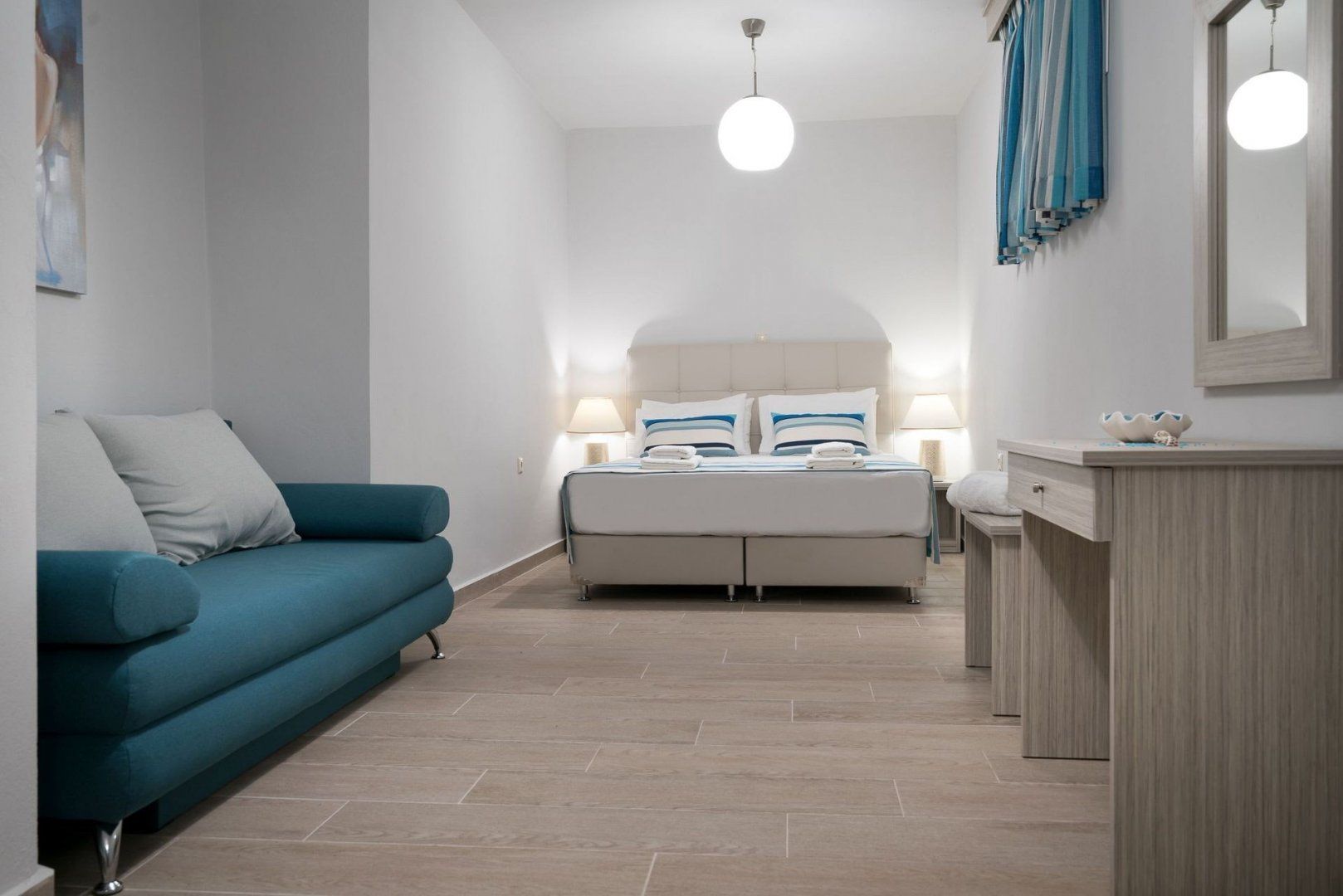 *At full occupancy, two guests will be sleeping on the sofa bed in the living area and three guests will be sleeping on the single and double sofa beds in two of the bedrooms.