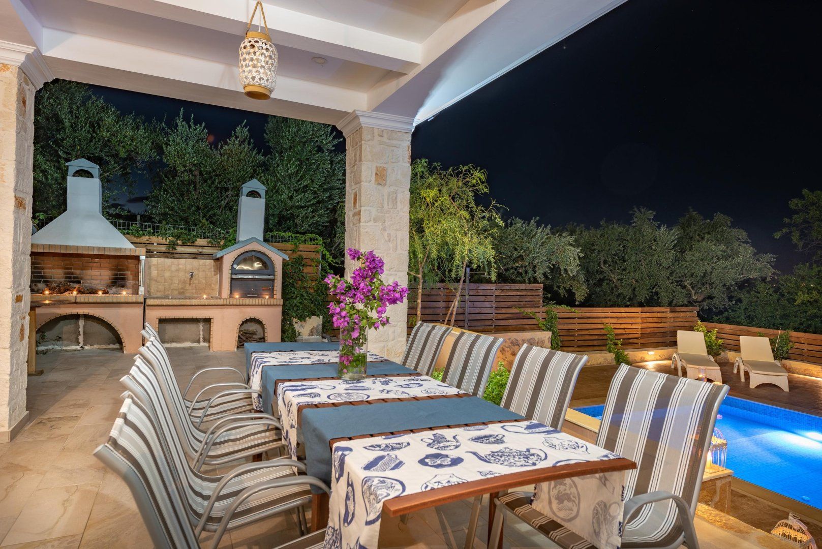 Surrounded by fruit trees and olive groves, days at this villa are meant to be spent outside in the sunshine. Whether you prefer a morning swim or a midnight dip under the stars, the pool is the perfect place to cool off and relax. Enjoy an afternoon stroll through the grounds, collecting fresh eggs for breakfast, picking vegetables from the garden and taking the kids to meet the animals on the seasonal hobby farm. Come dinnertime, fire up the barbecue grill, open a bottle of wine and eat outside on the terrace. The views alone are worth staying for – Zakynthos town, the cliffs at Chrystal beach and the small island of Pelouz are all visible from the balcony – but the cosy living space, comfortable bedrooms and fully-stocked kitchen make staying here a breeze.