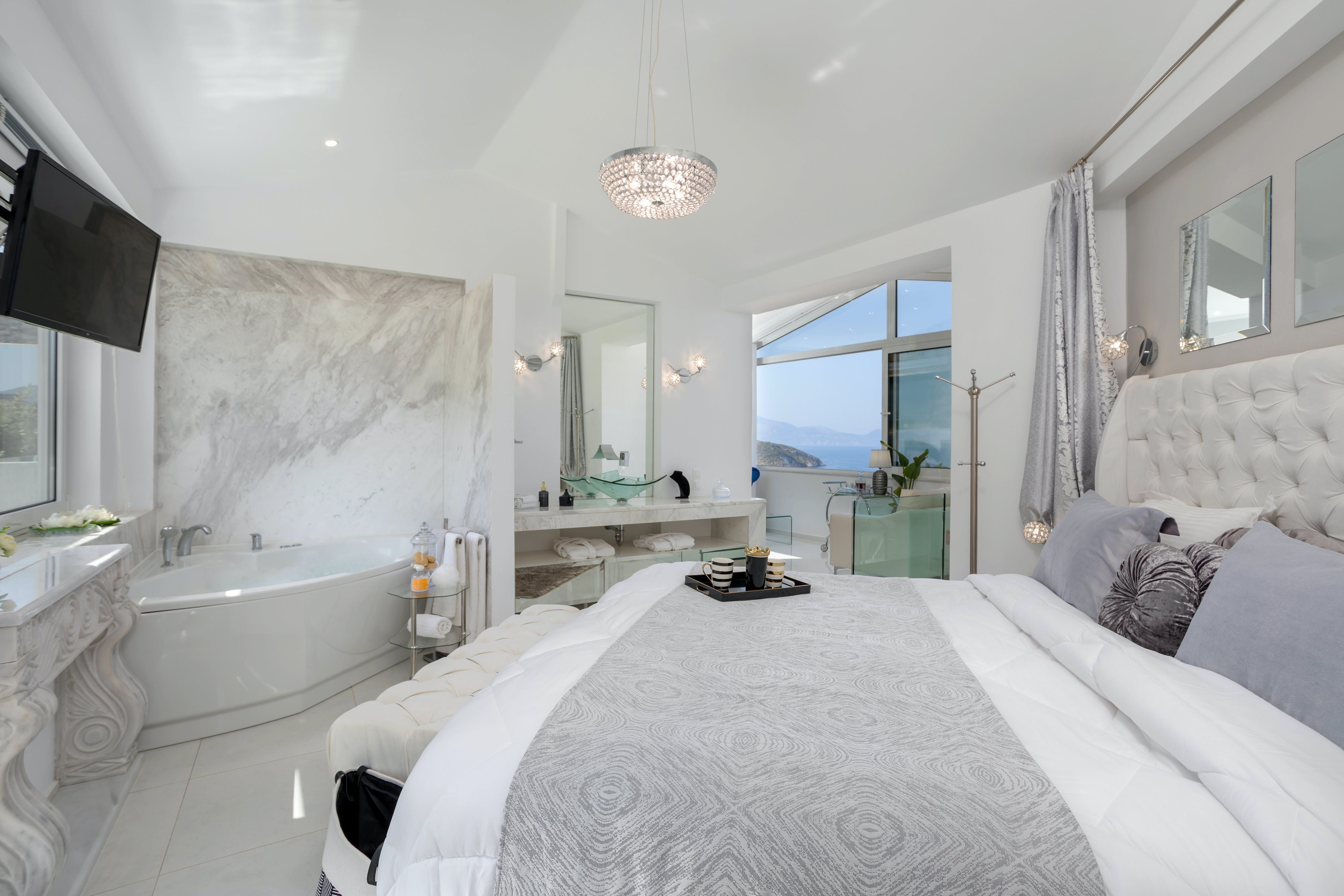 With a large outdoor area perfect for fun in the sun, this Zakynthos villa is a great base for a couple or a family. On the terrace, you've got the private plunge pool, barbecue, an alfresco dining area, and seating both in and out of the shade. But inside is a catch too – the bedroom has a hot tub, you can look out over the Ionian Sea from the living room, and the minimalist decor is a nice touch. If you're travelling with more than two, you'll be using the sofa beds in the living area. But with all that space, we don't think it will cause too much of a problem.