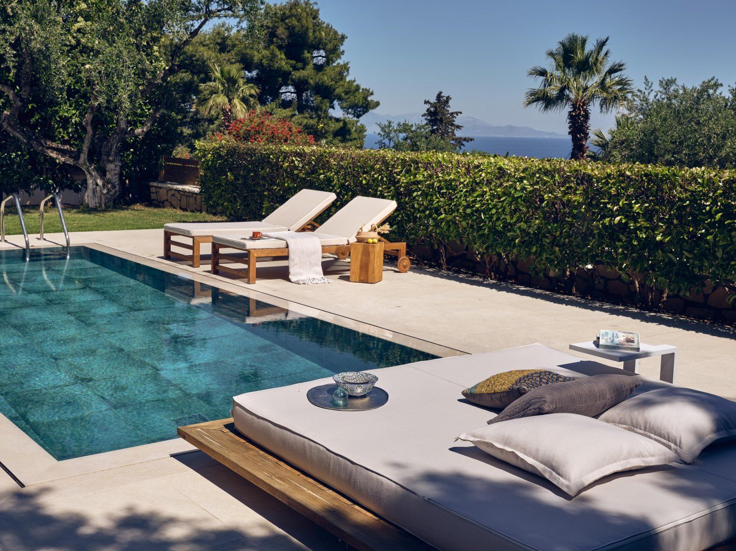 Perched on a hillside overlooking the Ionian sea and set within a century-old olive grove, this modern villa ticks all the boxes for a relaxing coastal break. With three en-suite bedrooms spread out over two floors, there’s plenty of space to unwind inside and admire the panoramic seascape views. The comfortable living area opens straight onto the pool and the outdoor dining space means alfresco barbecues will undoubtedly be a fixture of your stay. With Kryoneri Beach 550 metres away and Zakynthos Town 1.5 kilometres from home, there’s plenty to satisfy culture seekers and sand lovers alike. And with your host able to organise helicopter rides, massages, tours and more, there’s no end to the relaxation and adventure in store.