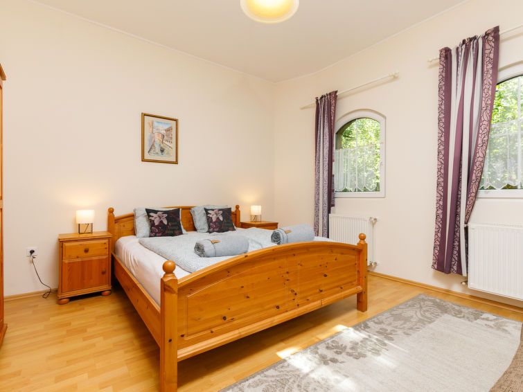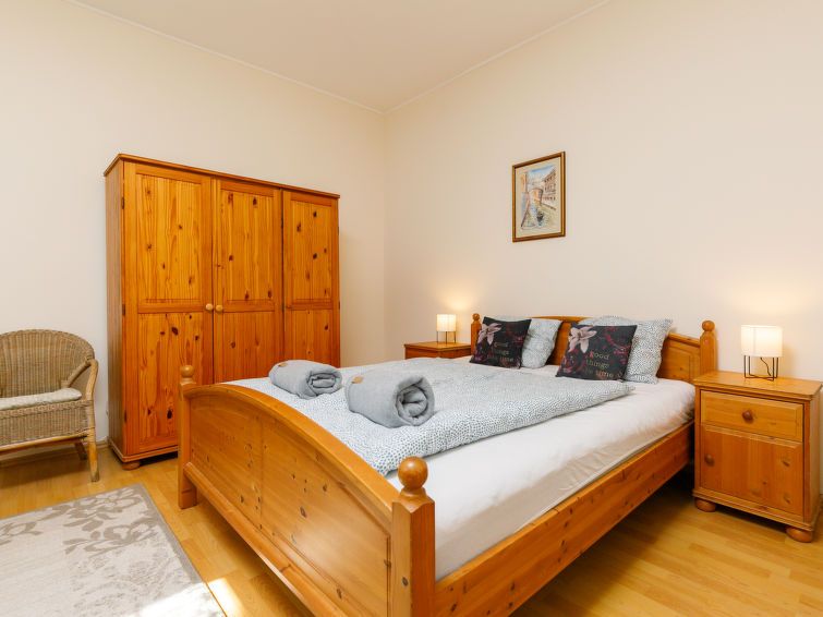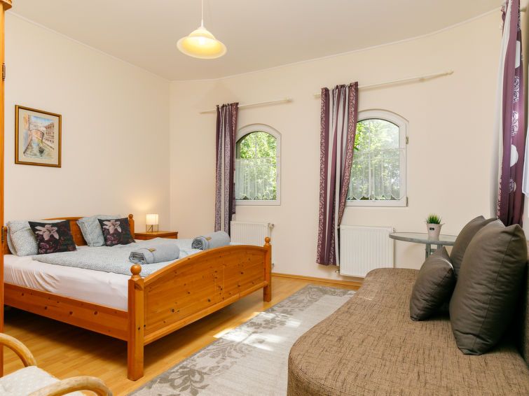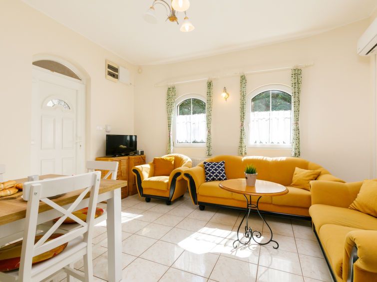 3-room house. Comfortable and cosy furnishings: open living/dining room with TV. Exit to the terrace. 1 double bedroom with 1 sofabed. 1 room with 2 beds (90 cm, length 200 cm). Open kitchen (oven, 4 gas rings, toaster, kettle, microwave, freezer). Shower/WC. Heating, gas heating, air-conditioning.