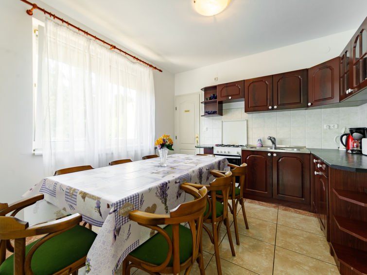 The house is functionally furnished. The pool is smaller than the photo suggests. The garden is spacious, with deck chairs, dining table, chairs, barbecue area. The train line is nearby, which you can hear discreetly. The highlight for me were the bedrooms. On the ground floor with a bathtub, on the upper floor with a shower, each bedroom has its own bathroom with toilet, a hallway with a refrigerator and 2 hotplates. This means that each bedroom is separated from the hallway and the noise of the other rooms by 2 doors.