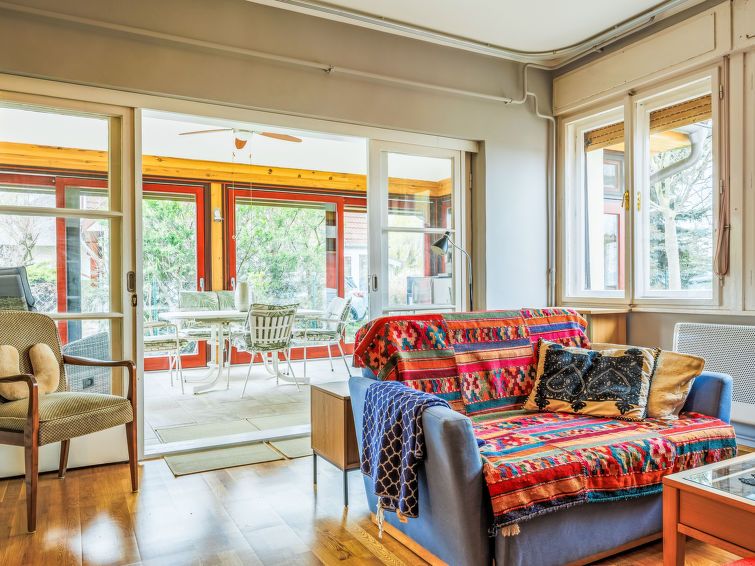 4-room house on 2 levels. Practical and comfortable furnishings: living room with cable TV and international TV channels. 1 small room with 1 bed. Dining room with winter garden. Exit to the garden. Small kitchen (oven, dishwasher, Gas stove, 4 gas rings, toaster, kettle, microwave, freezer, electric coffee machine).