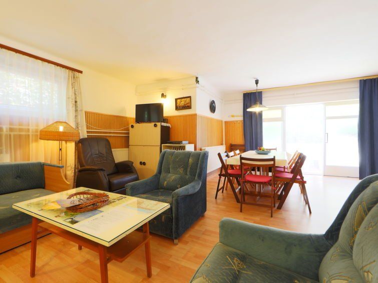 Very nice landlady, came by personally if there was a problem with electricity. House older, but ok. Stairs to the first floor very steep. Furniture partly not fully functional (doors), beds very uncomfortable (hard/worn out), no WiFi, but satellite TV. Kitchen adequately equipped. Beautiful terrace and garden. Lake 5 minutes away, you need a car for shopping. All in all a successful family holiday with 3 generations.