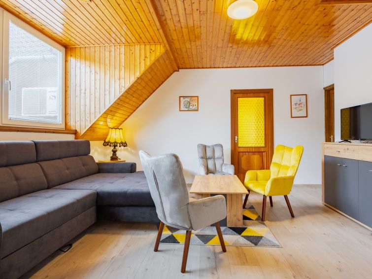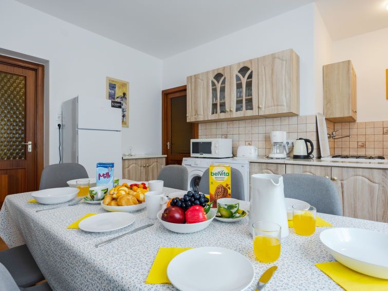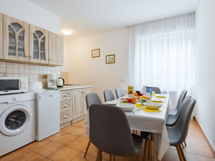"Moni 1", 7-room apartment 200 m2. Spacious, comfortable furnishings: entrance hall with satellite TV. Exit to the terrace. 3 rooms, each room with 2 beds (90 cm, length 200 cm). Open kitchen (4 hot plates, oven, dishwasher, toaster, kettle, microwave, freezer, electric coffee machine).