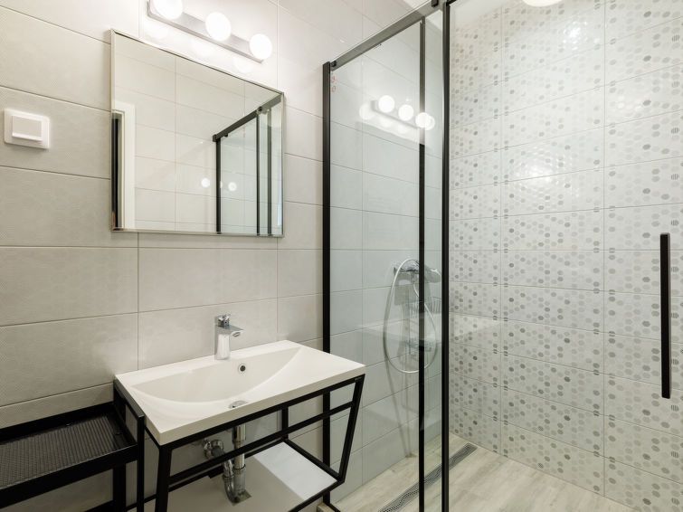 "Park 2", 1-room studio on the ground floor. Beautiful and modern furnishings: Studio with 1 french bed (160 cm, length 200 cm), kitchen corner and cable TV (flat screen). Small, open kitchen (2 ceramic glass hob hotplates, microwave, electric coffee machine). Shower/WC. Floor heating.