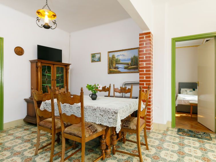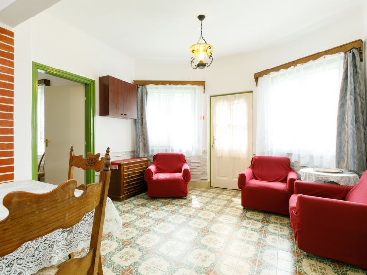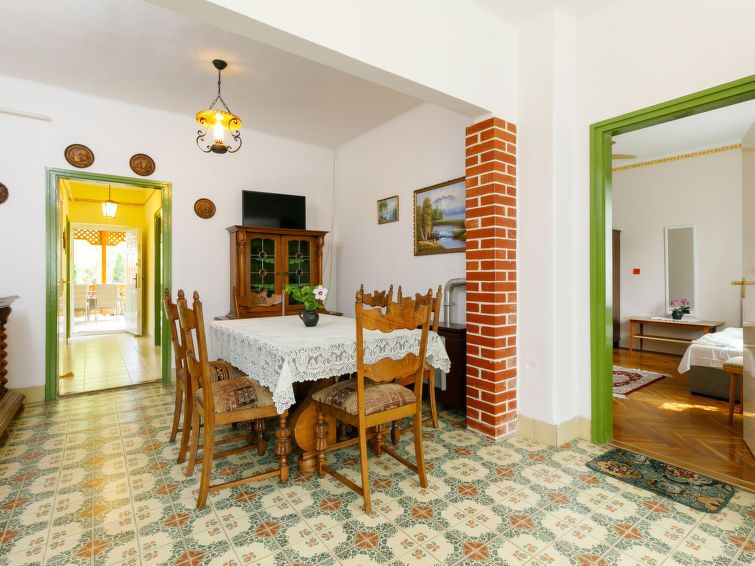 On 1st floor. Comfortable furnishings: open living/dining room with digital TV and flat screen. Exit to the garden. 2 rooms, each room with 3 beds (90 cm, length 200 cm). 2 rooms, each room with 2 beds (90 cm, length 200 cm). Kitchen (oven, Gas stove, 4 gas rings, kettle, microwave).