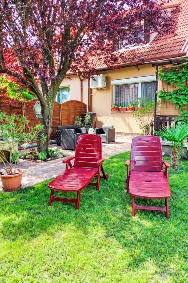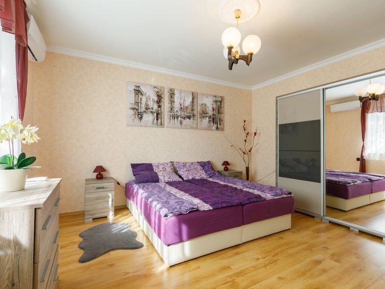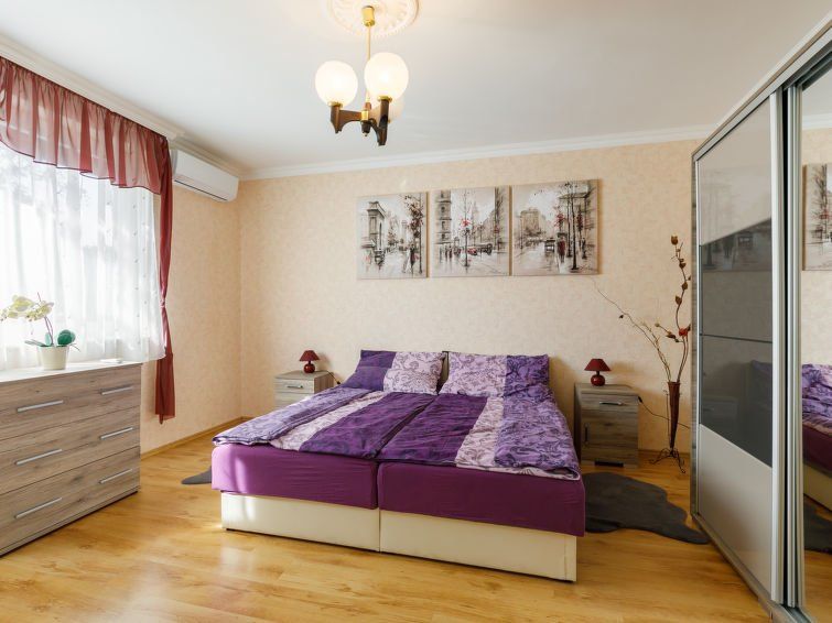 Living/dining room with satellite TV. Exit to the terrace. 1 room with 2 beds (90 cm, length 200 cm), air conditioning. Open kitchen (dishwasher, 4 ceramic glass hob hotplates, toaster, kettle, microwave, freezer, electric coffee machine). Shower/bidet/WC, sep. WC. No heating option.