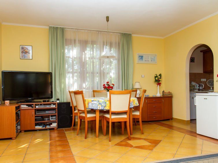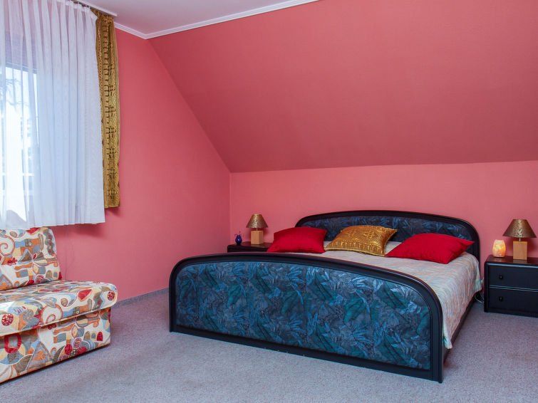 4-room house 120 m2. Comfortable furnishings: living room with cable TV. Exit to the terrace. Open kitchen (4 hot plates, oven, microwave). Shower/WC. No heating option. Upper floor: 1 room with 1 french bed. 1 room with 2 beds. 1 room with 1 pull-out bed. Shower/WC. Terrace. Terrace furniture, deck chairs (2).