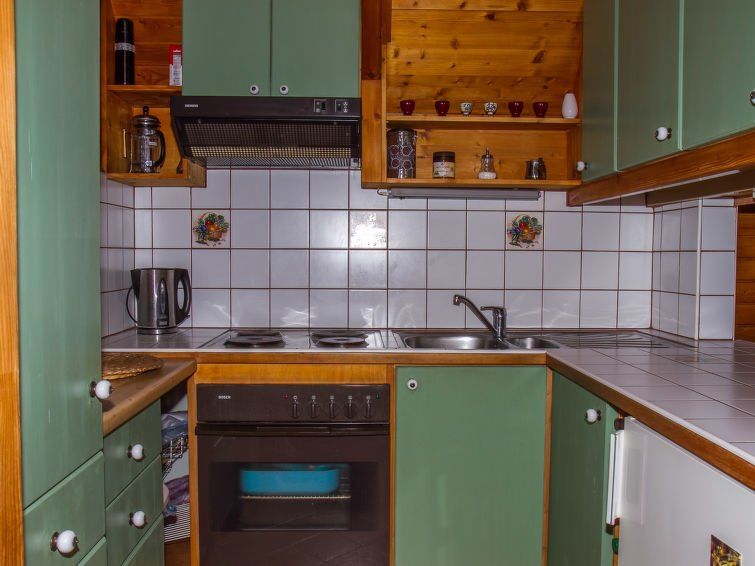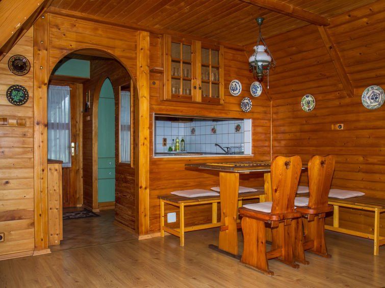3-room house 60 m2. Cosy and wooden furniture furnishings: living/dining room with TV. Exit to the terrace. Open kitchen). Shower/WC. No heating option. Upper floor: 1 room with 1 pull-out bed (2 pers.). 1 room with 2 beds. Large terrace. Terrace furniture, barbecue. Facilities: washing machine.