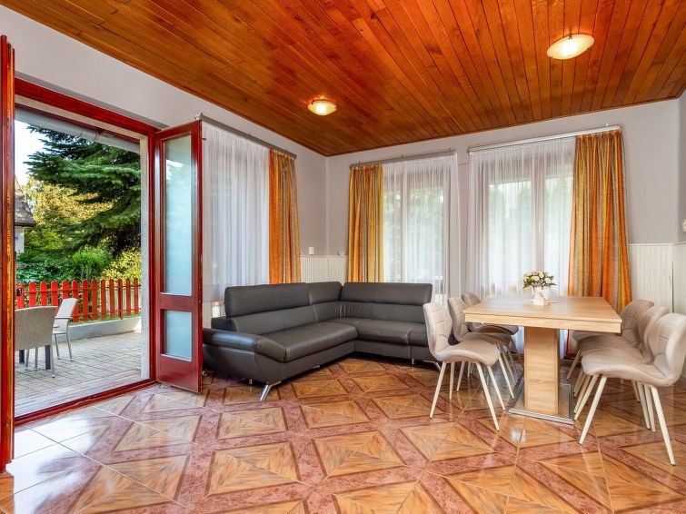 4-room house 100 m2. Comfortable furnishings: living/dining room with TV. Exit to the terrace. 1 room with 1 french bed. 2 rooms, each room with 2 beds. Kitchen (4 hot plates, microwave, freezer). Bath/shower, sep. WC. No heating option. Terrace. Terrace furniture, barbecue. Facilities: children's high chair, baby cot for up to 3 year olds.