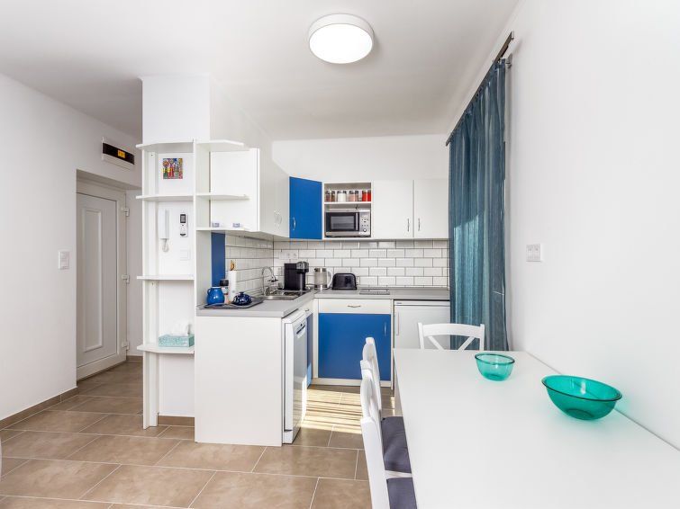 "Anastasia", 2-room apartment 35 m2, on the ground floor. Object suitable for 2 adults + 2 children. Modern and cosy furnishings: living/sleeping room with 1 pull-out bed (2 pers.), air conditioning. Exit to the terrace. 1 room with 1 french bed. Open kitchen (2 hot plates, dishwasher, toaster, electric coffee machine).
