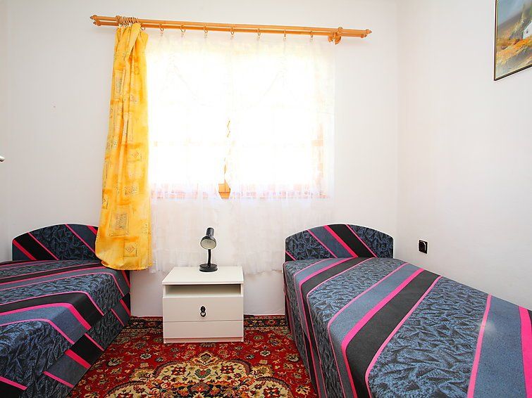 4-room house 75 m2. Comfortable furnishings: living/dining room with satellite TV. Exit to the terrace. 1 room with 1 french bed. 2 rooms, each room with 2 beds. Open kitchen (4 hot plates, oven). Shower/WC. No heating option. Large terrace. Terrace furniture, barbecue (portable).