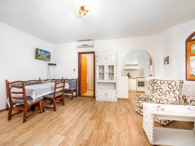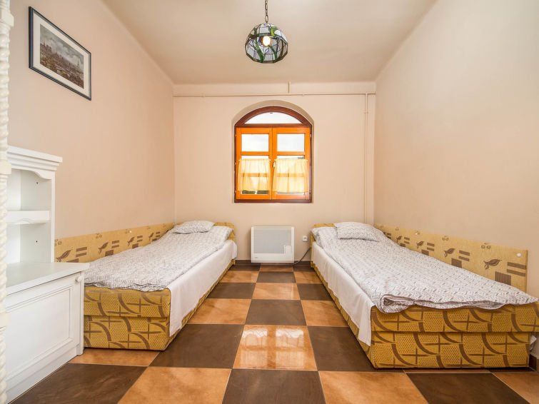6-room house 100 m2. Comfortable furnishings: living/dining room with 1 sofabed and satellite TV. Exit to the terrace. 1 room with 1 french bed. 1 room with 2 beds. Small kitchen). Shower/WC. Heating. Upper floor: living/dining room with 1 sofabed and satellite TV. 1 room with 1 french bed.