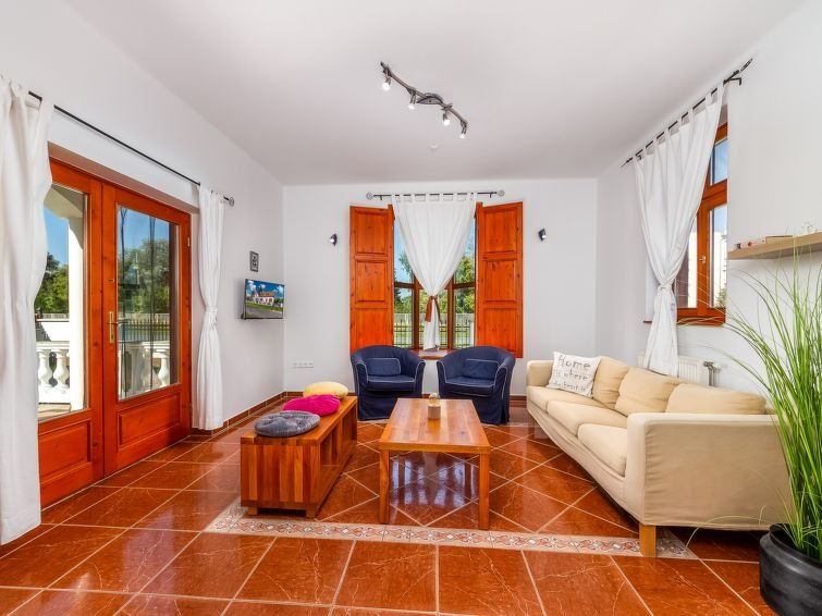5-room semi-detached house 100 m2. Partly with sloping ceilings, comfortable and tasteful furnishings: living room with dining nook, satellite TV and air conditioning. Exit to the terrace. 1 room with 2 beds. Open kitchen (3 hot plates, oven, microwave). Shower/WC. Heating. Upper floor: 2 rooms, each room with 2 beds.