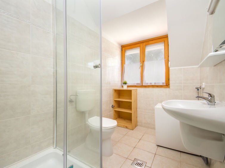 "Katie 2", 3-room apartment 50 m2, on the upper floor. Comfortable furnishings: living room. Exit to the balcony. 1 room with 1 double bed. 1 room with 1 bed and 1 sleeping facility. Open kitchen (2 gas rings, microwave). Shower/WC. Heating. Balcony. Balcony furniture, deck chairs.