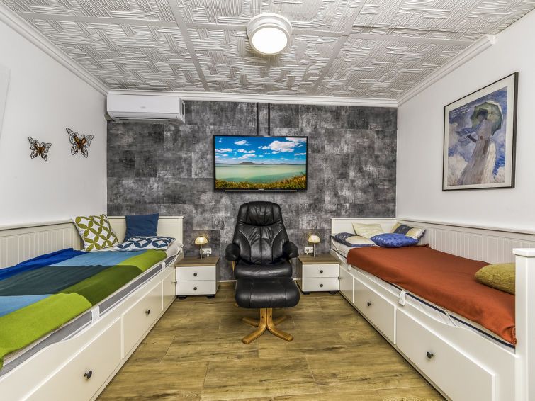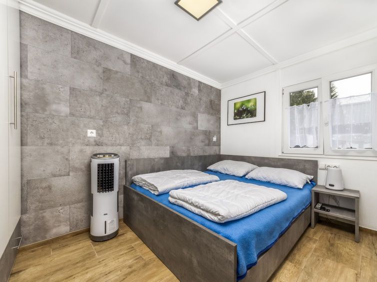 2-room semi-detached house. Fully renovated in 2022, comfortable furnishings: open living/sleeping room with 2 beds (80 cm, length 200 cm), dining table, satellite TV and air conditioning. Exit to the veranda. 1 double bedroom with 1 french bed (160 cm, length 200 cm), satellite TV and air conditioning.