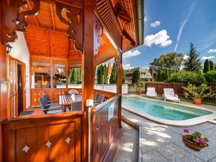 5-room house 130 m2 on 2 levels. Partly with sloping ceilings, modern and cosy furnishings: living/dining room with satellite TV and air conditioning. Exit to the terrace. 1 room with 2 beds. Open kitchen (4 hot plates, oven, microwave). Bathroom, sep. WC. Heating. Upper floor: gallery with air conditioning.