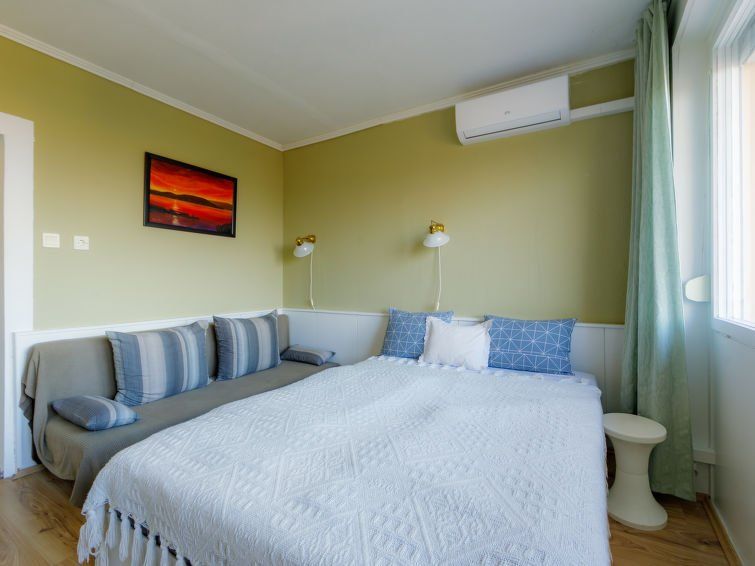 1-room studio 20 m2 on 6th floor. Fully renovated in 2019, cosy furnishings: 1 room with 1 double bed (160 cm, length 200 cm), 1 pull-out bed (1 pers.), cable TV and air conditioning. Exit to the balcony. Small, open kitchen (2 hot plates, microwave). Shower/WC. Small balcony. Balcony furniture.