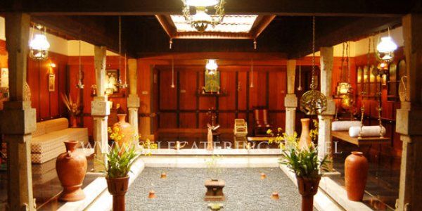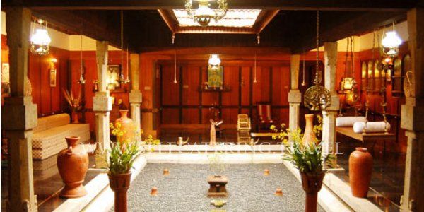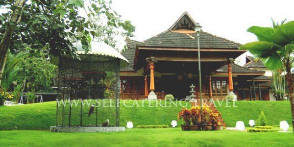 Luxury homestay in Kerala India by selfcatering.travel Unique tourist board approved diamond homestay set on twenty acres, near the town of Kottayam in Kerala. This holiday homestay is a Nalukettu. Nālukettuis is the traditional homestead of old Tharavadu where many generations of the matrilineal family lived. These very traditional buildings are usually found in Kerala. The architecture is typically a rectangular building, where 4 halls join together with a central court yard opening to the sky.