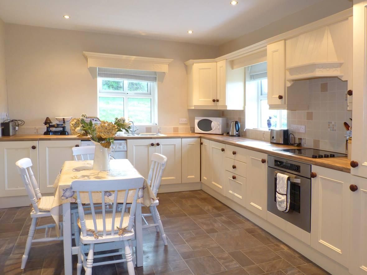 Step inside and find yourself in the elegant and bright open-plan kitchen/diner with a farmhouse-style fitted ‘L’-shaped unit with wooden worktops and white cabinets.