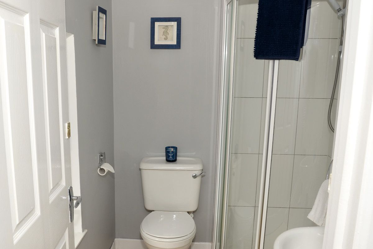 Tulip is the bedroom downstairs and it has two single beds and it's own toilet .