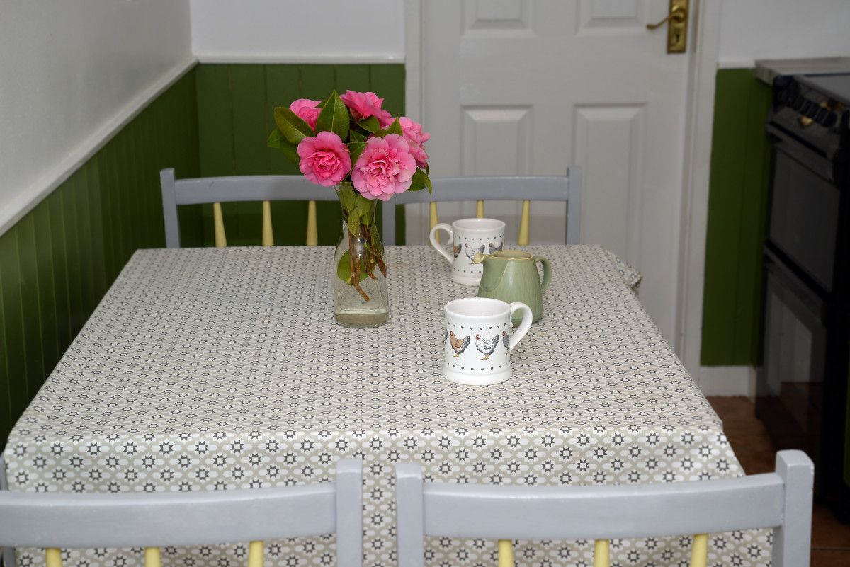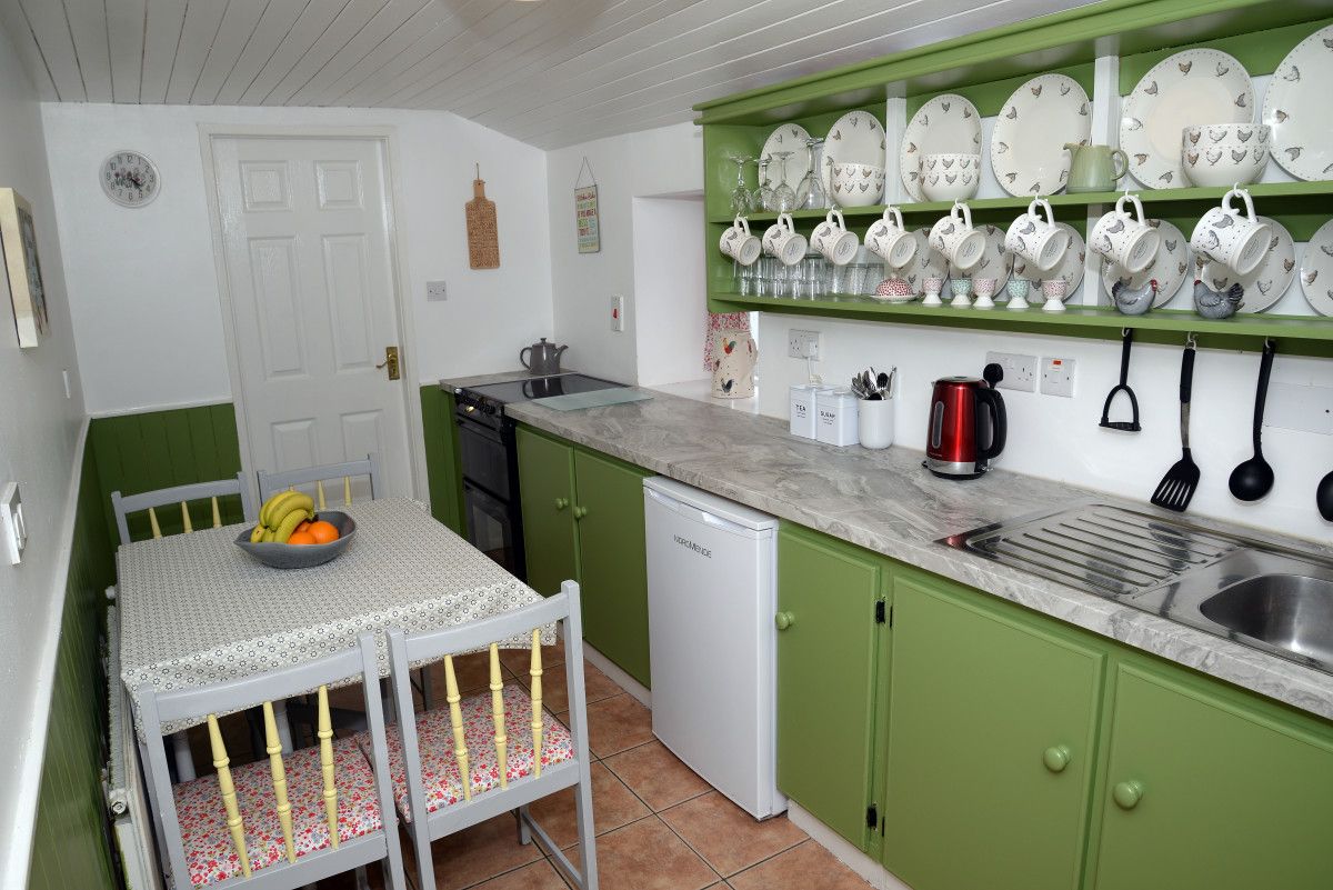 The kitchen looks out on the wild garden, which displays a carpet of colour with mature Azaleas,Rhododendrons and Dahlias, which provide the perfect habitat for bees and butterflies. The kitchen contains all mod cons.