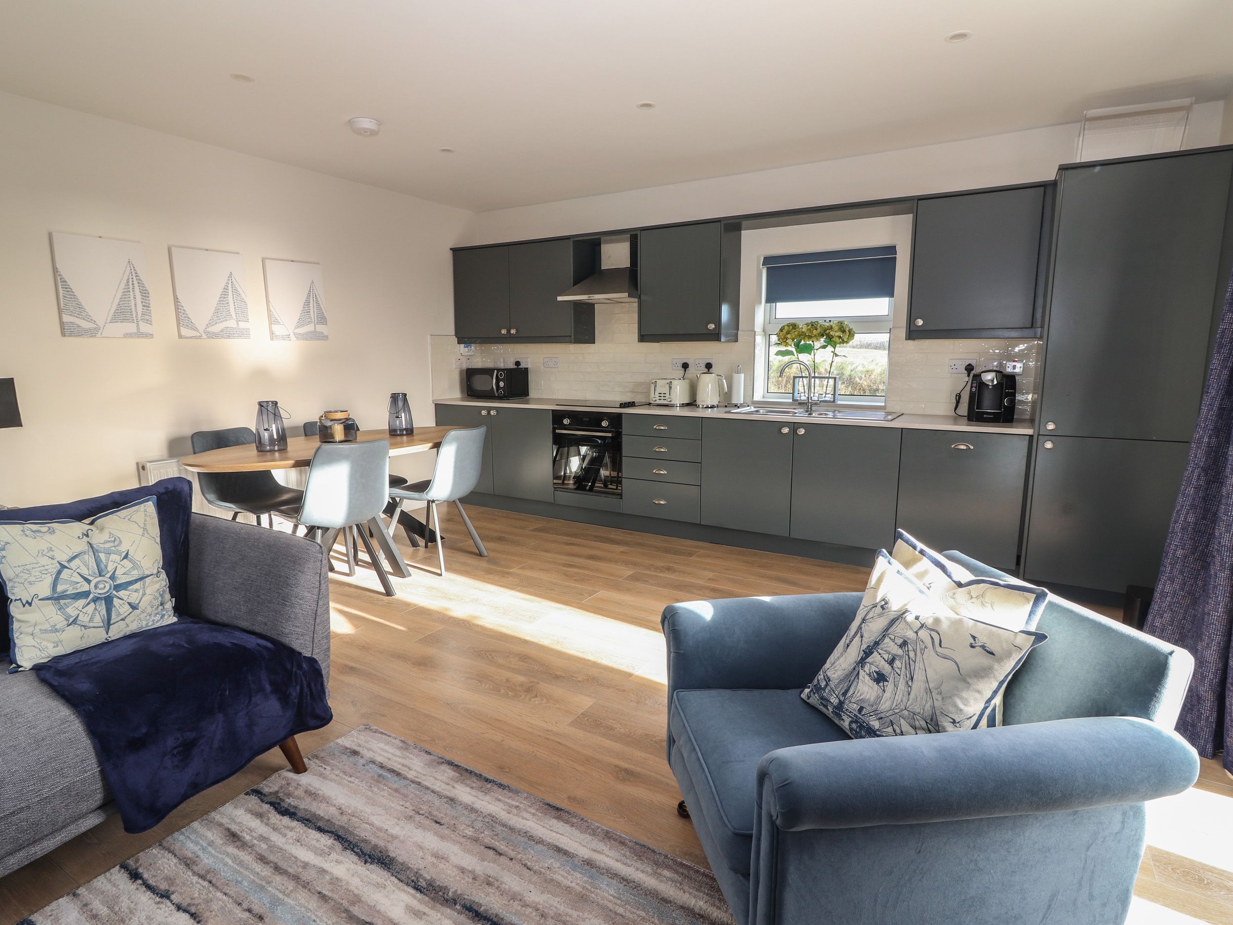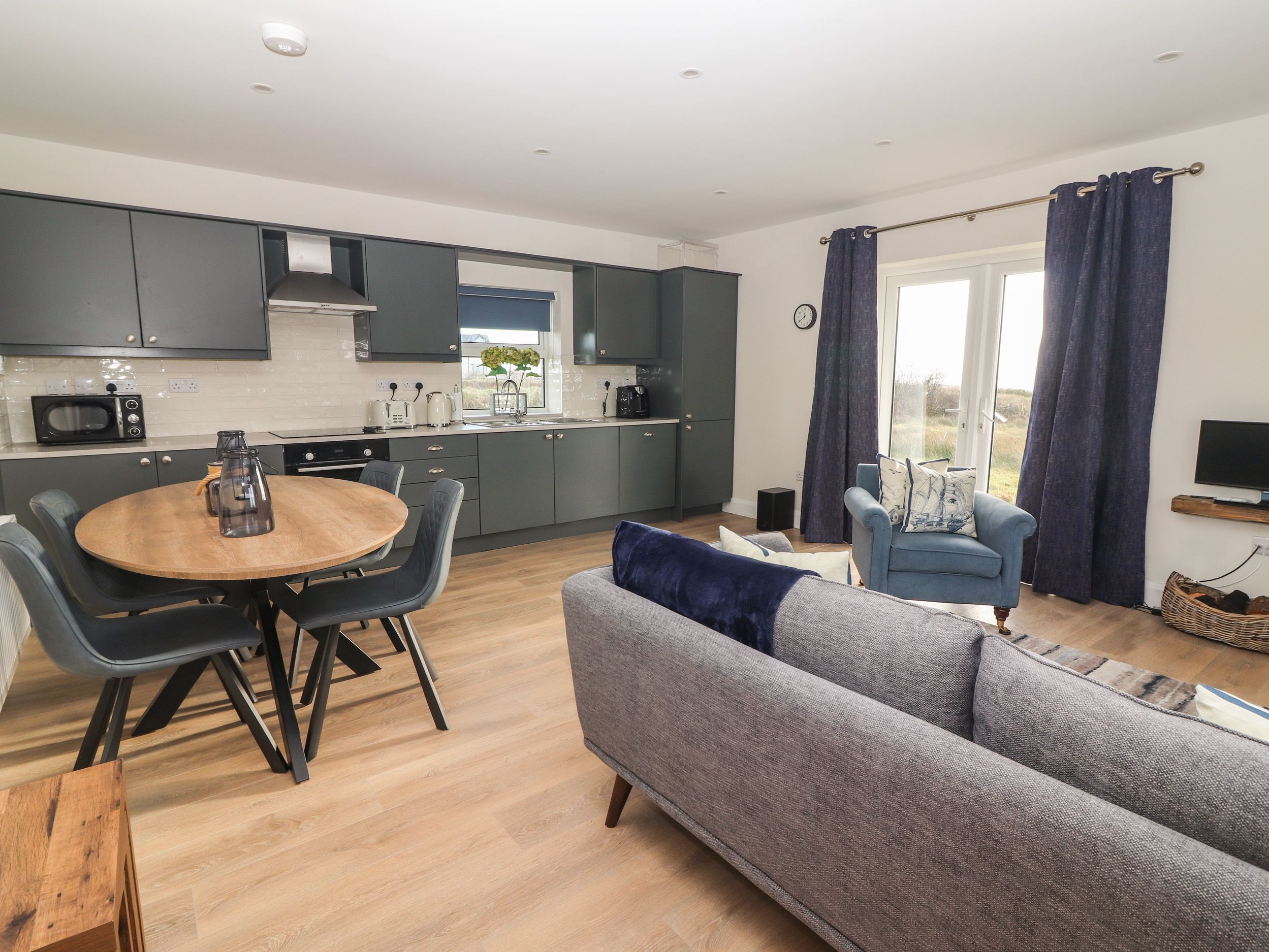 Accomodation Details Single-storey. Two double bedrooms with en-suite walk-in shower, basin, heated towel rail, and WC. Utility with WC and basin. Open-plan living space with kitchen, dining area, and sitting area with multi-fuel stove