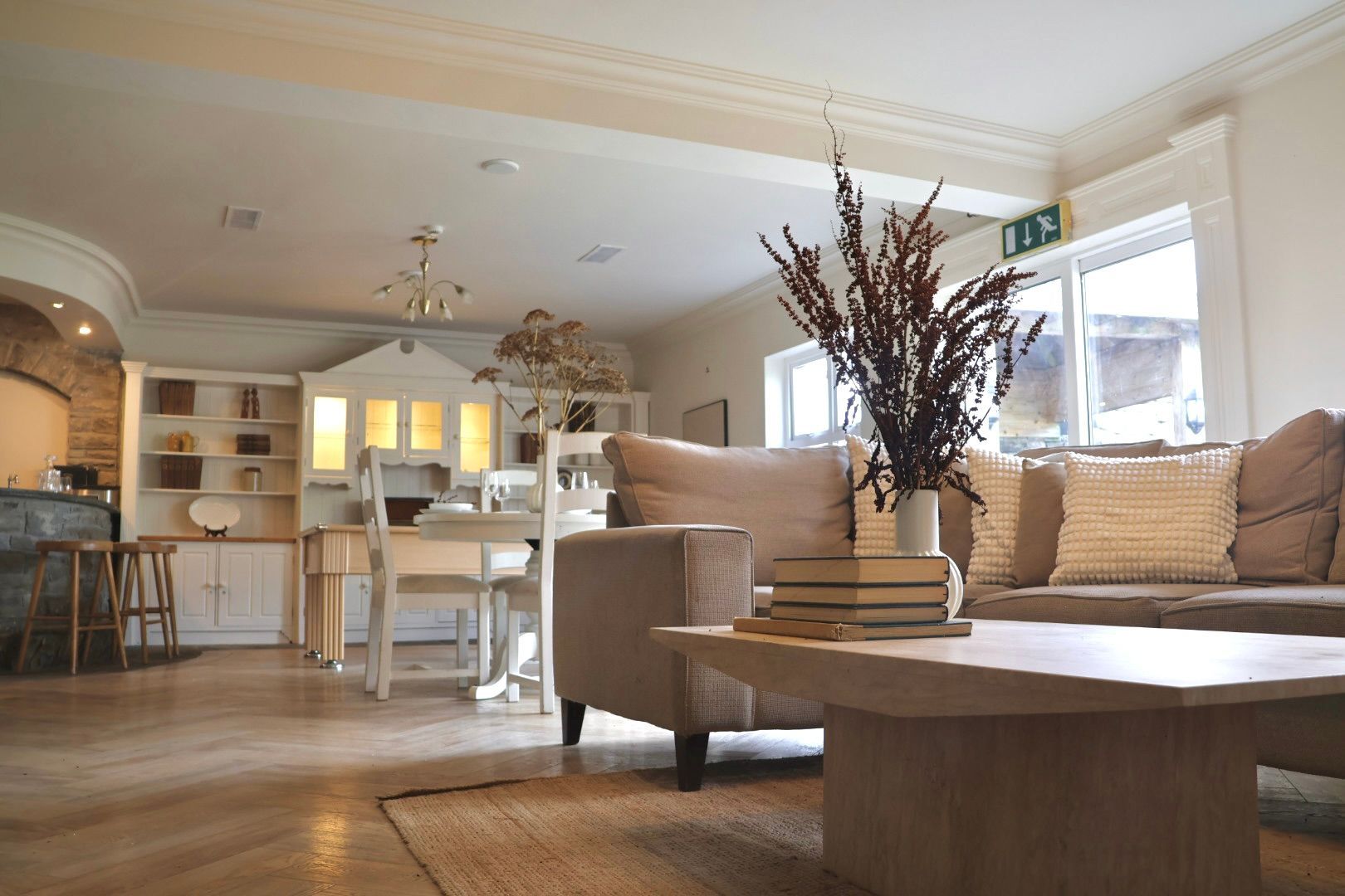 Spacious sitting room with open fire