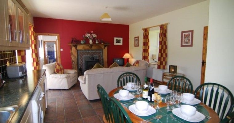 The house has three bedrooms with one queen size and two double beds, sleeping six. An extra person can be accommodated on the sofa. One bedroom is ensuite and the main bathroom has bath and shower. It is centrally heated and the open plan kitchen, dining , living area has a solid fuel stove for that added comfort and atmosphere. Wood is provided free of charge by the owners Seamus and Mary who live nearby in Ashgrove House. They are always available for help and advice and frequently share a glass of wine or similar with their guests.