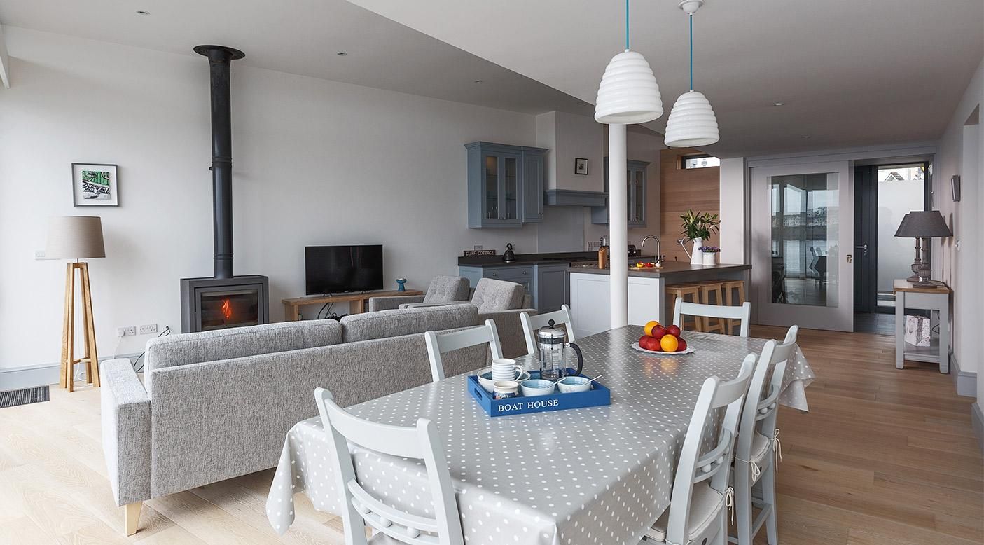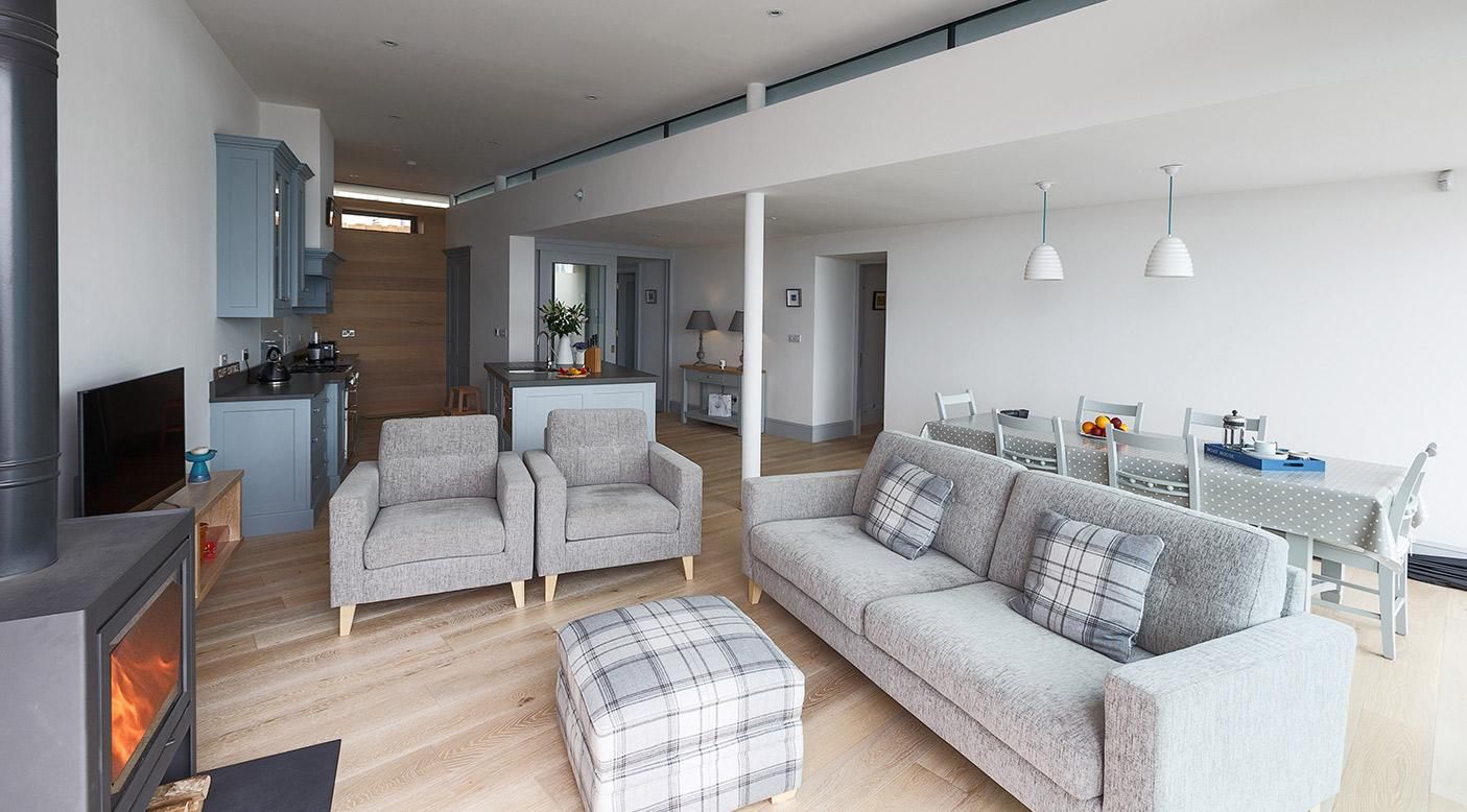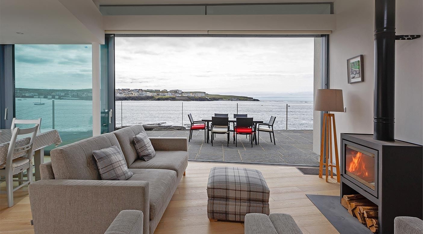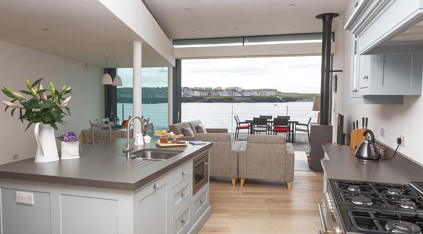 The open-plan extension is filled with natural light and designed to 'bring the outside in' with seascape views that surround you.