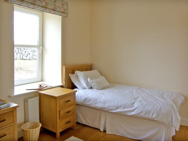 Amenities Oil central heating with electric stove. Electric oven and hob, microwave, fridge, freezer, washing machine, tumble dryer, dishwasher, TV with free to air channels, DVD, CD, radio. Fuel and power inc. in rent. Bed linen and towels inc. in rent. Off road parking for 4 cars. Enclosed lawned garden to front and rear with patio area and garden furniture. Two well-behaved dogs welcome. Sorry, no smoking. Shop, pub and beach 3.5 miles. Note: Mobile phone reception is limited due to location.