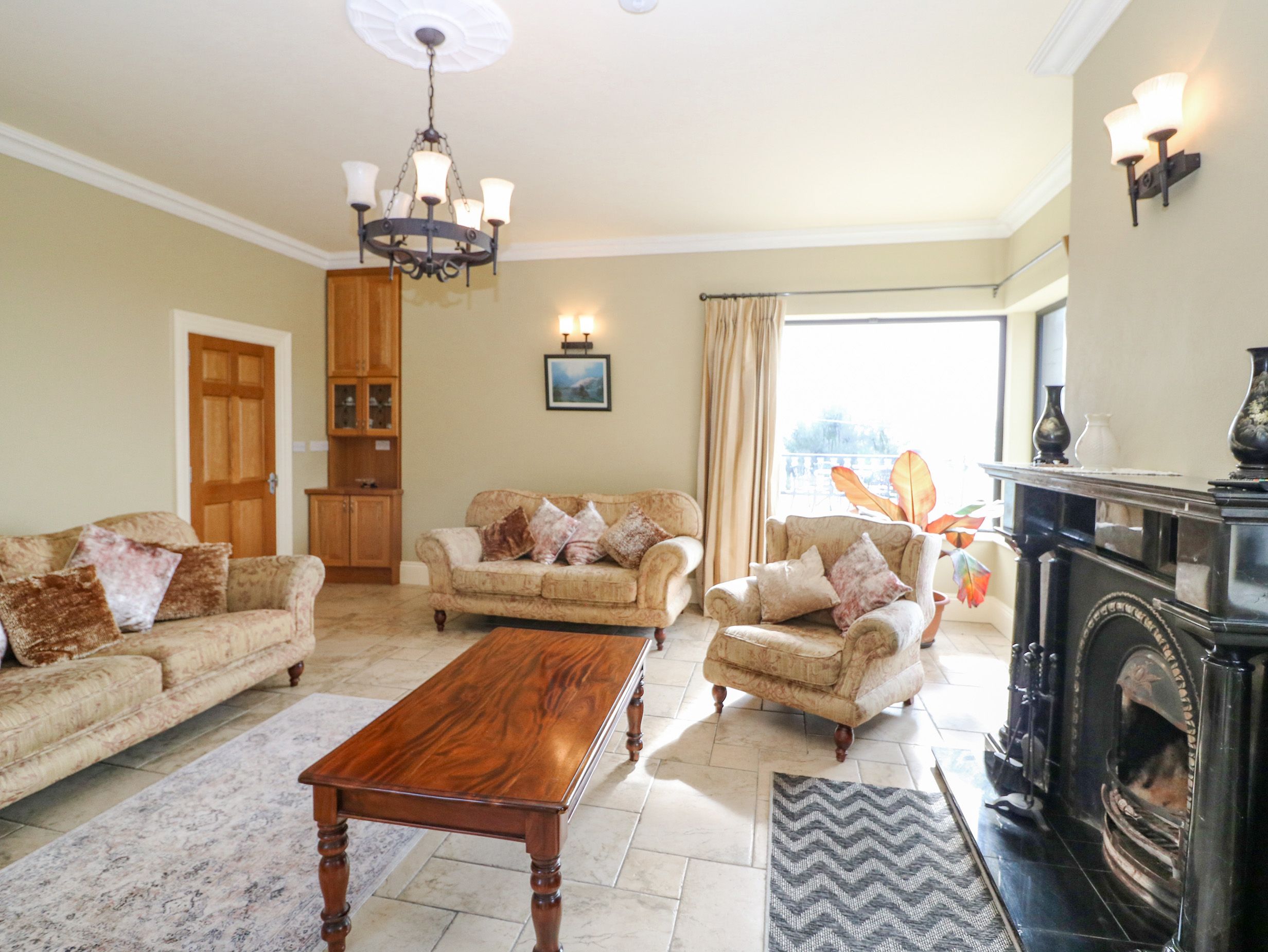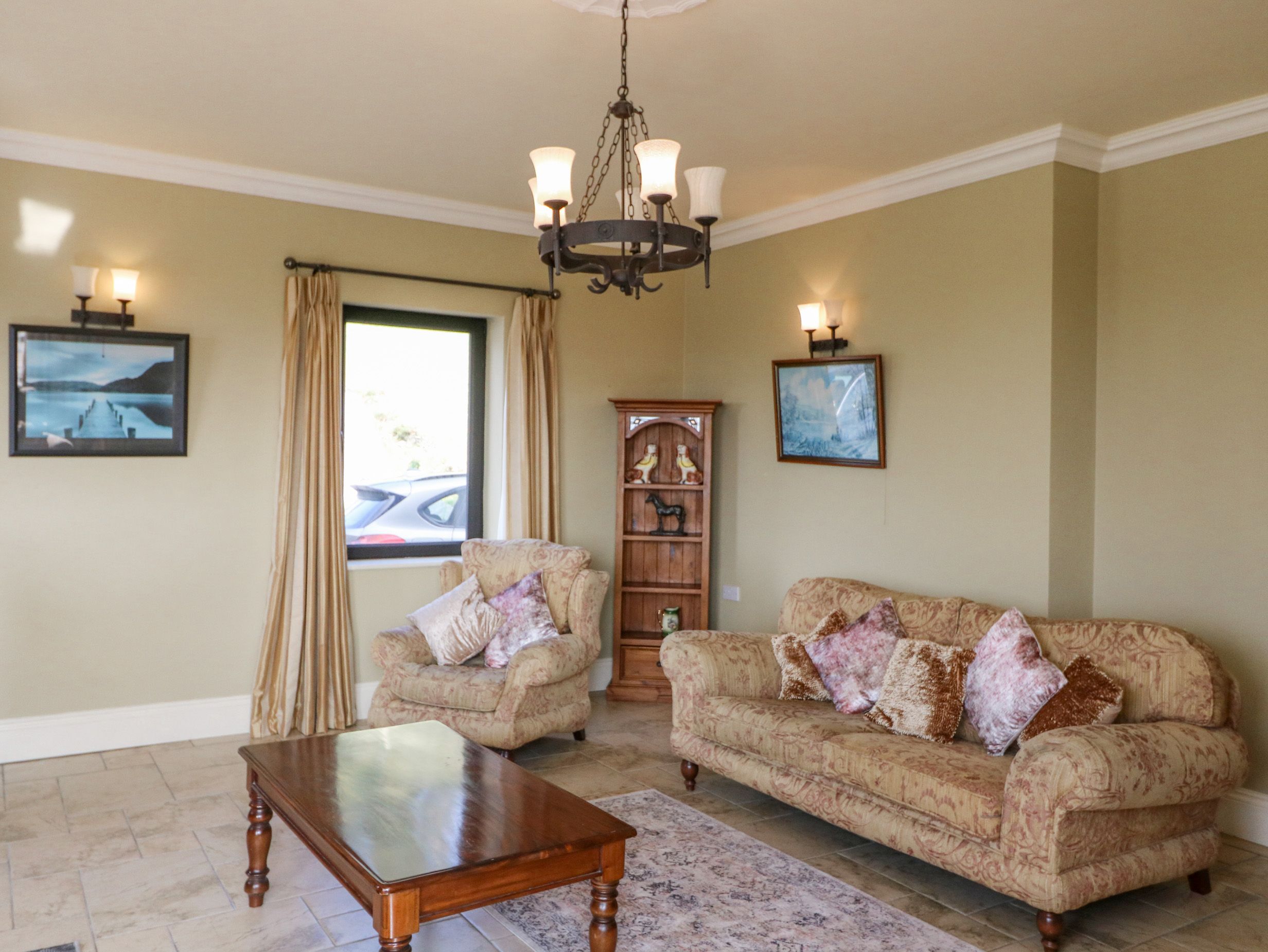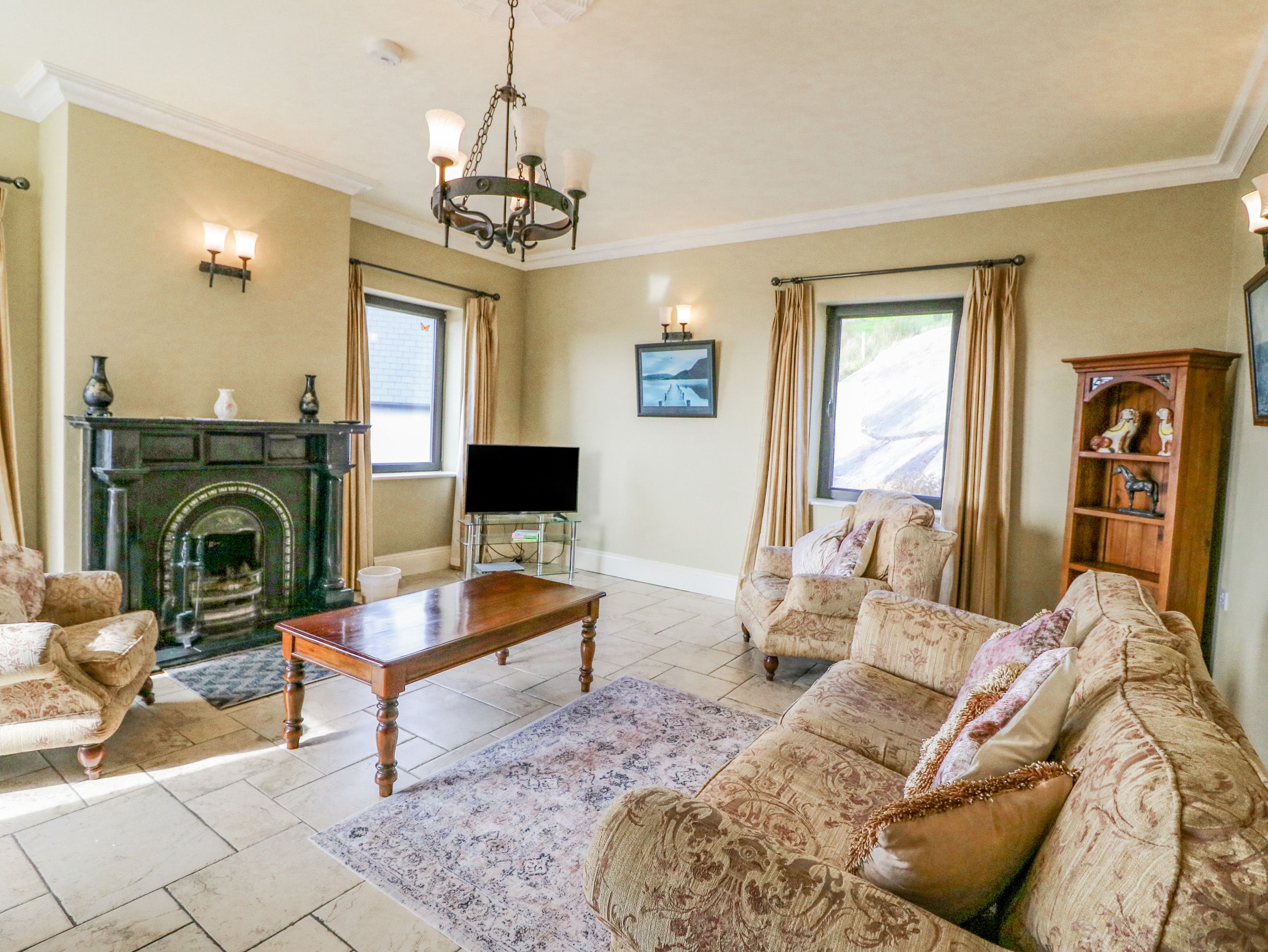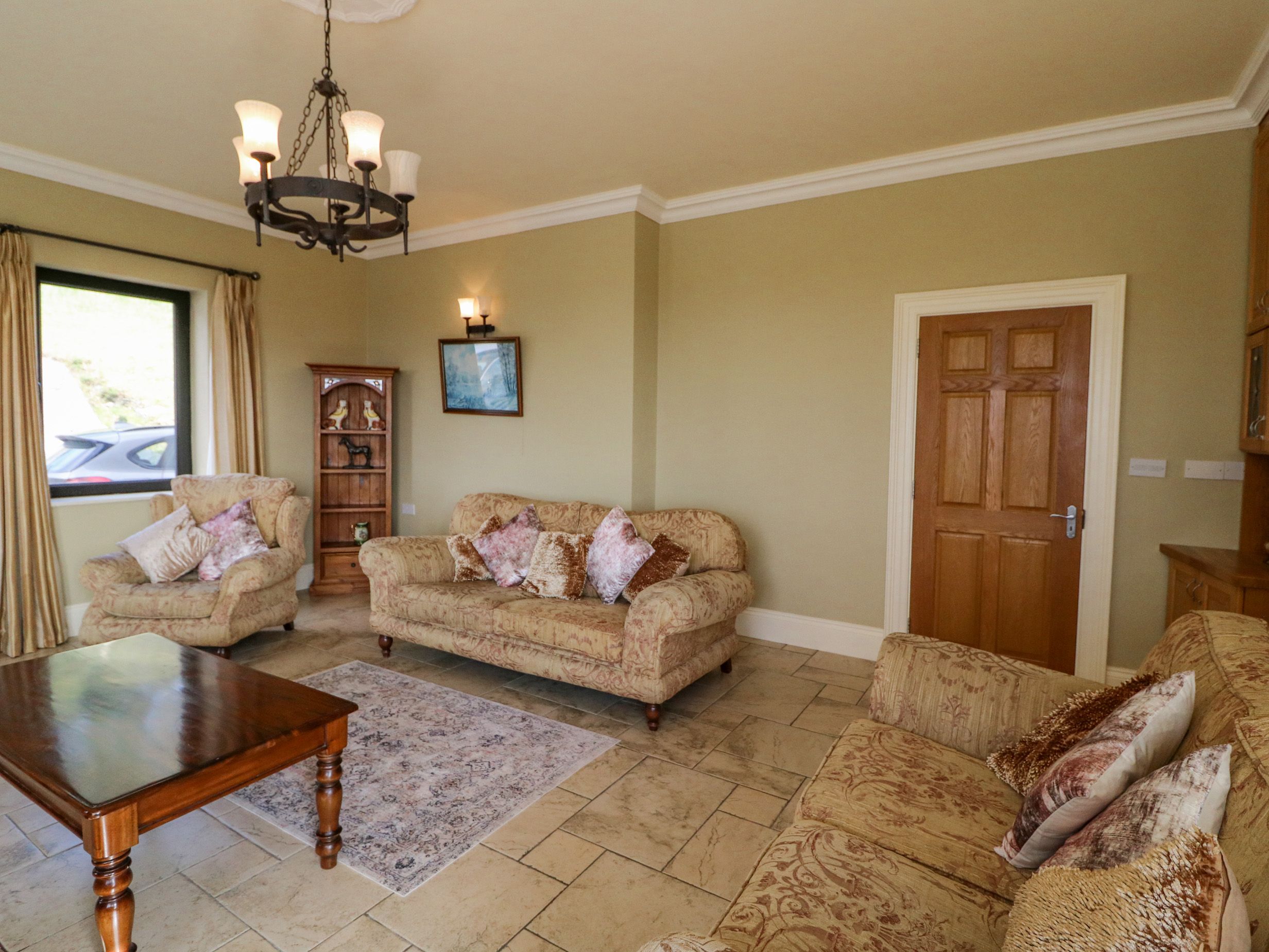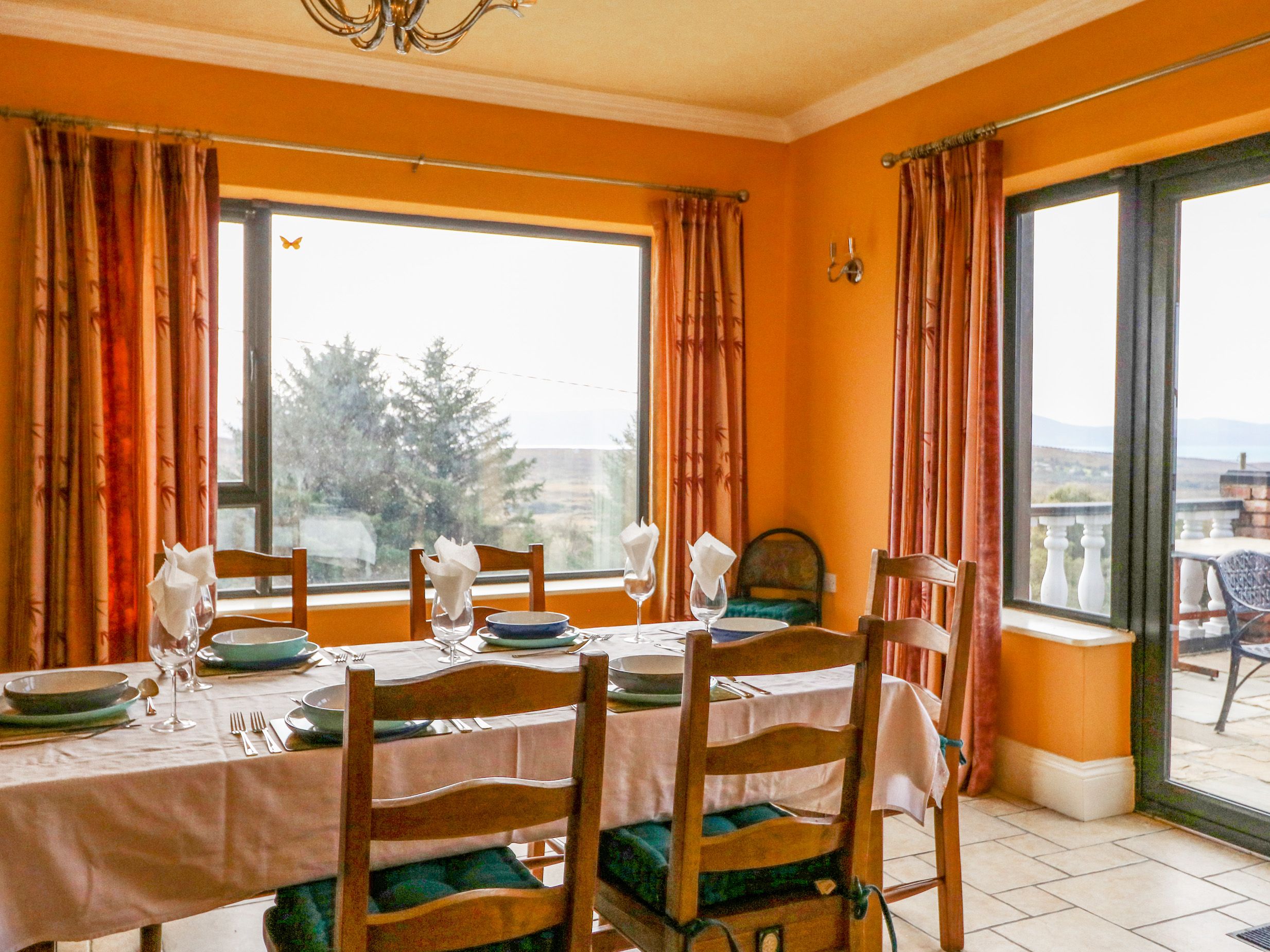 Oil central heating with open fire. Electric oven, gas hob, fridge/freezer, washing machine, dishwasher, flat screen TV with basic Sky package, DVD, CD/radio, selection of books. Oil & electricity inc. in rent (€60 supplement payable direct to owner ). Fuel for open fire available to purchase locally. Bed linen & towels inc. in rent. Off road parking for four cars. Lawned garden to side & front & patio area with furniture & BBQ. Sorry, no smoking. Shop & pub 1.5 miles. Note: Max 10 adults. Please note: parties are strictly forbidden.