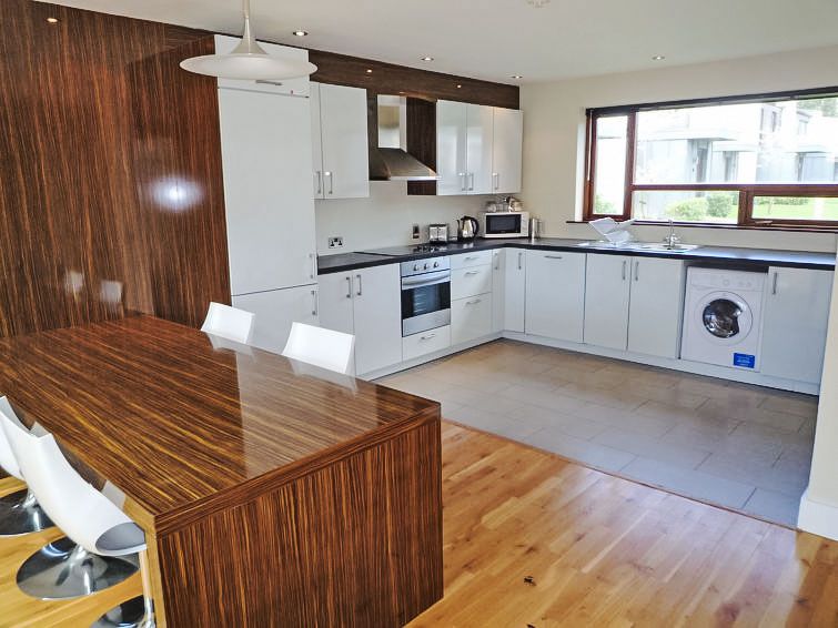 "Castlemartyr Holiday Lodge", 3-room house 120 m2. Spacious, modern and luxurious furnishings: living/dining room with TV and DVD. Kitchen (4 hot plates, oven, dishwasher, freezer). Sep. WC. Upper floor: 1 double bedroom with 1 double bed and shower/WC. 1 room with 2 beds and shower/WC.