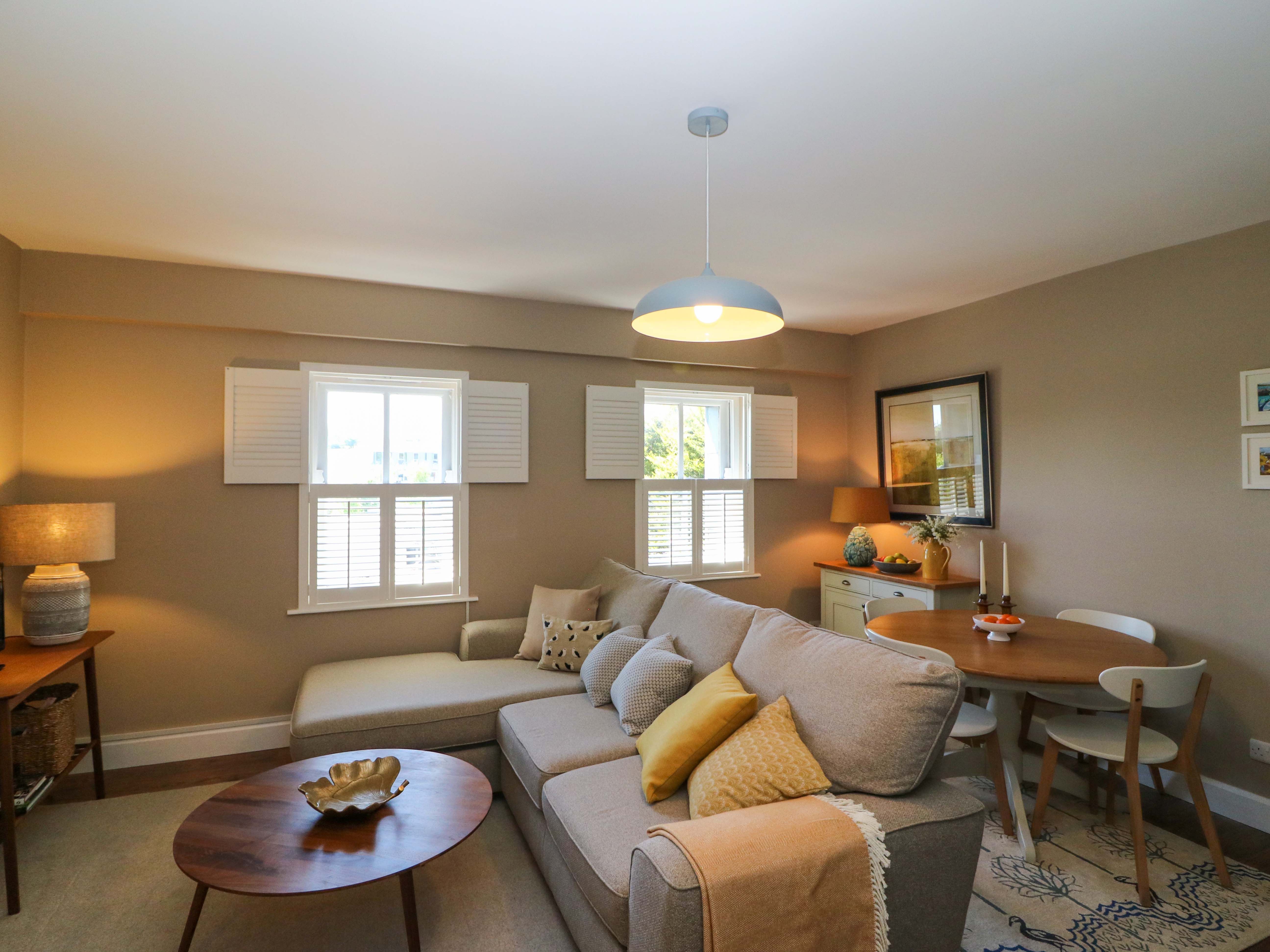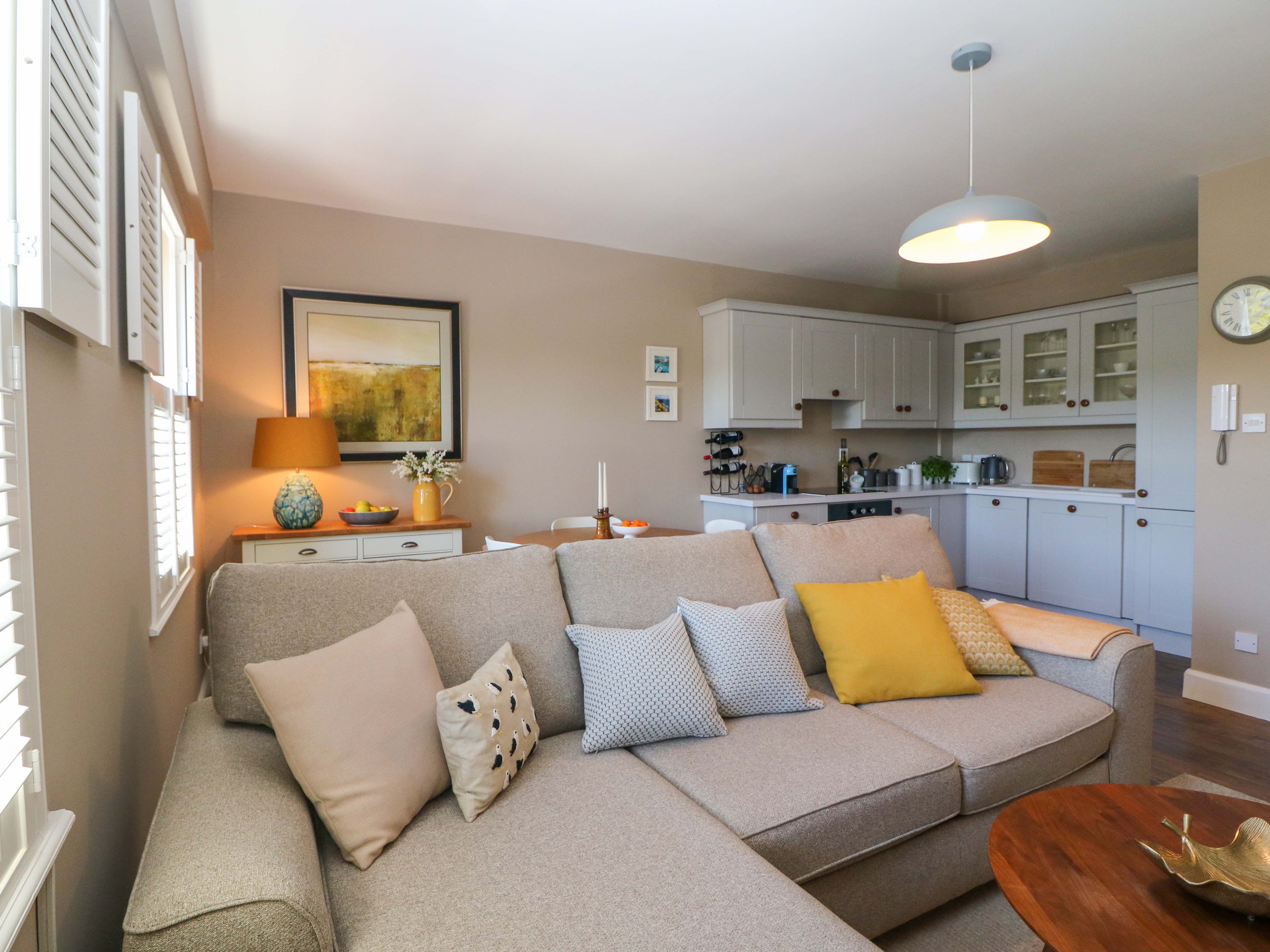 Accomodation Details First-floor apartment. Two bedrooms: 1 x double with en-suite walk-in shower, basin, and WC, 1 x double. Bathroom with bath, shower over, basin, and WC. Open-plan living area with kitchen, dining area, and sitting area