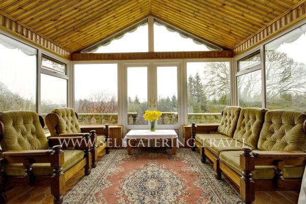 Its elegant conservatory leads into a large sitting room and living area both with open fireplaces.