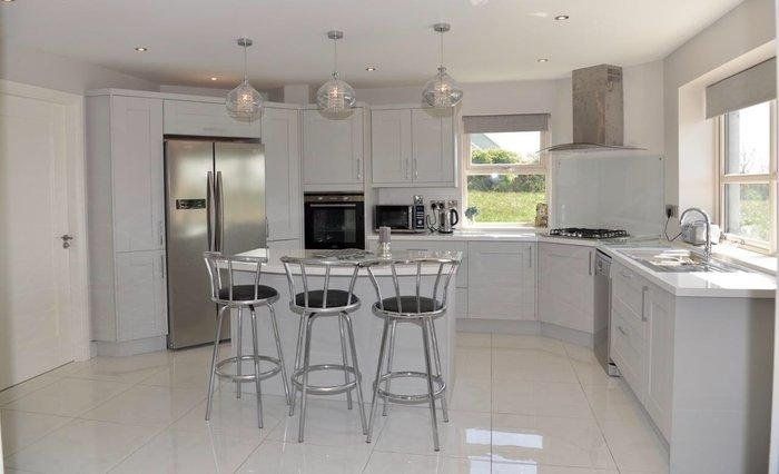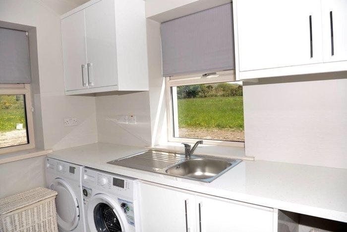 The open plan ground floor features a well equipped fully fitted kitchen with American style fridge freezer and laundry/utility. All mod cons: sky tv (including sports channels), internet, washing machine, tumble dryer, microwave, oven, power showers, bath, central heating and stove fires, stand-alone property with a stone-built entrance, gravelled driveway and plenty of parking space. Very high-quality finish.
