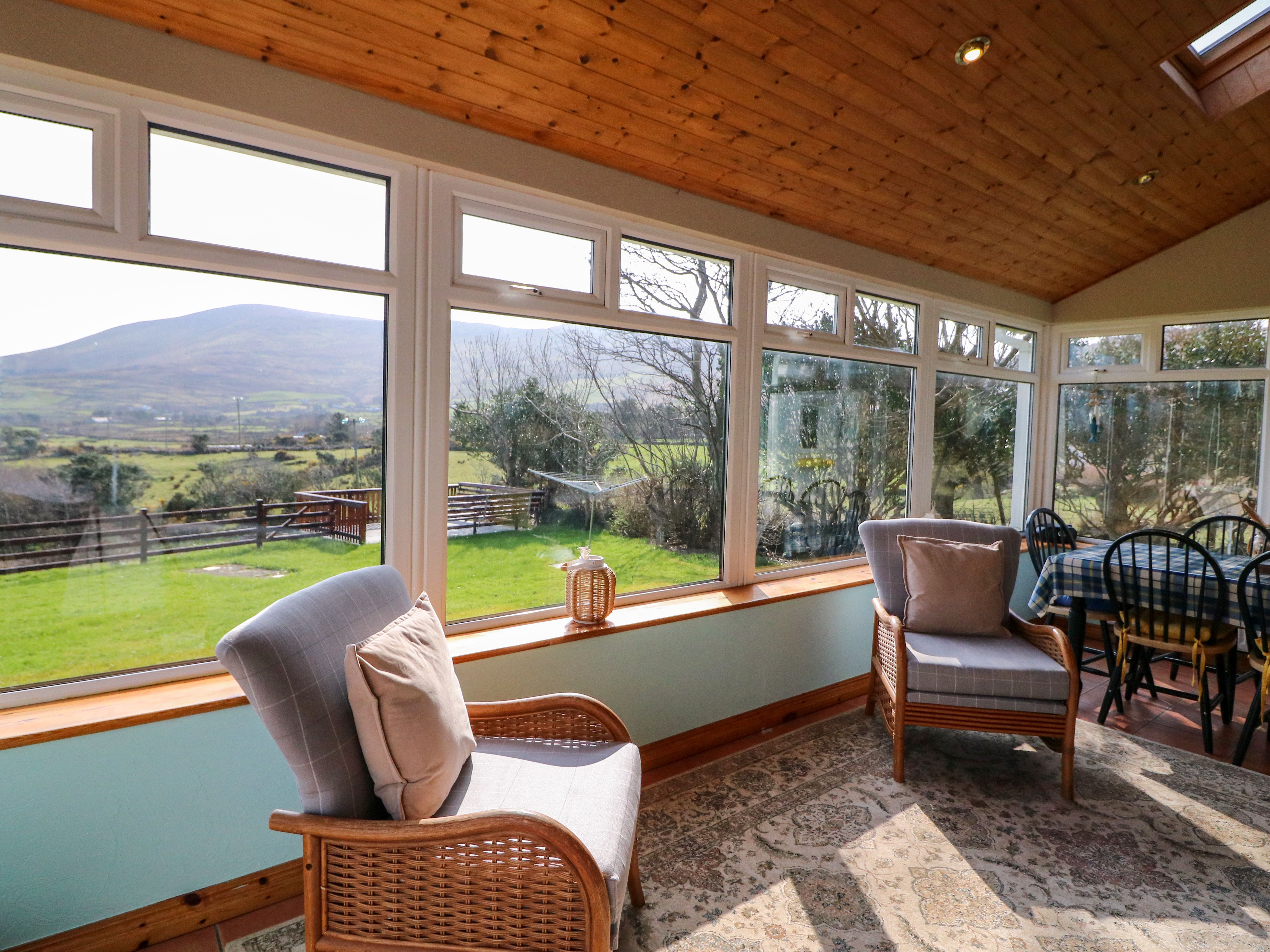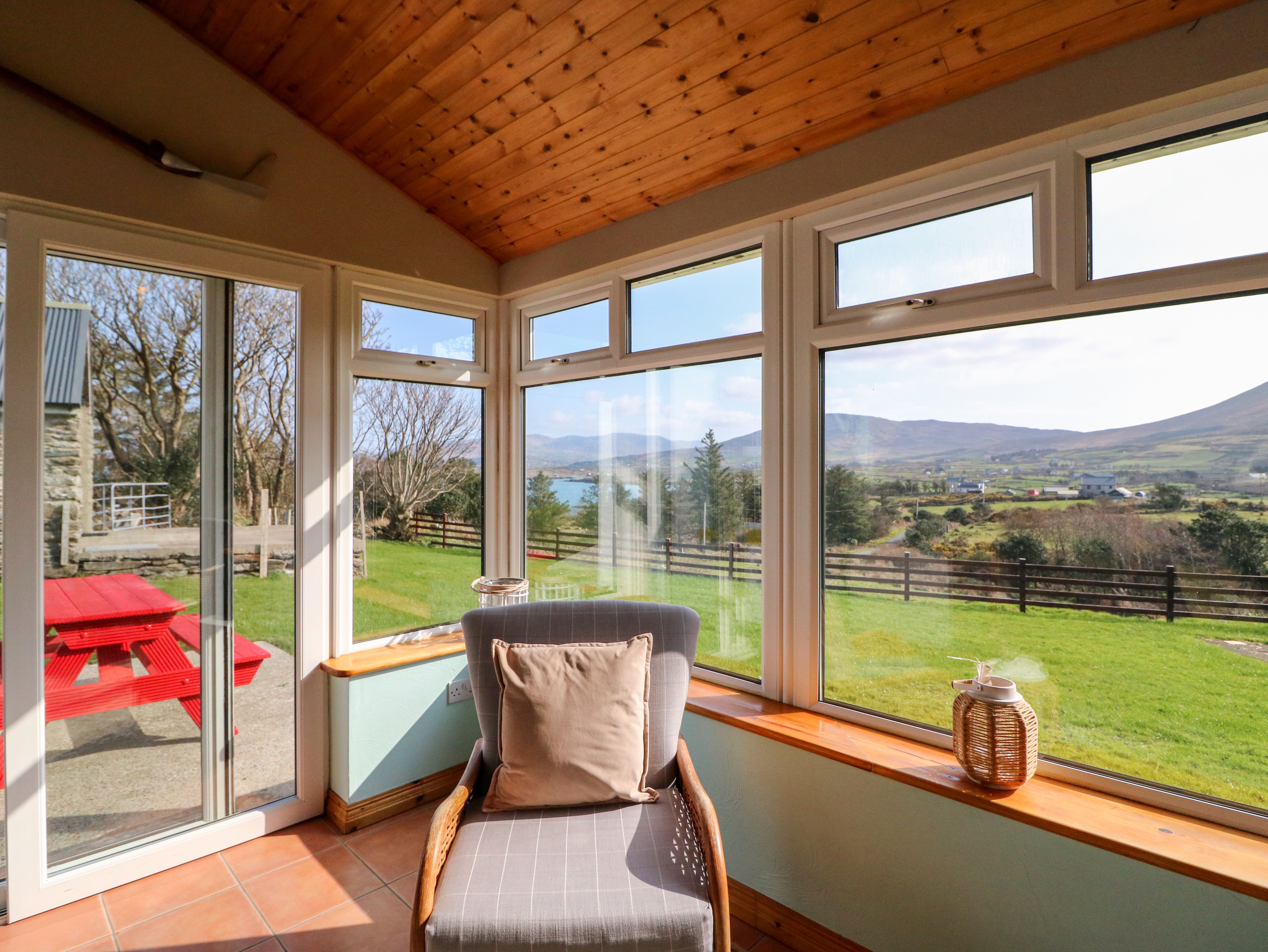 Holiday home Sugarbush is a welcoming, detached country house, overlooking the stunning surrounding mountains and coast, located 4.5 miles from Eyeries in County Cork. With three bedrooms offering a variety of sleeping accommodation, one on the ground floor with an en-suite, the property can sleep seven people. There's also a separate family bathroom on the ground floor, along with a kitchen, a sitting room with multi-fuel stove and a sun room with dining area. Outside is a good-sized garden, with a wonderful decking area where you can enjoy sublime views, along with off road parking for one car. Sugarbush is a charming, country cottage, is an excellent location. Please note the property accepts a minimum of 4 nights stays