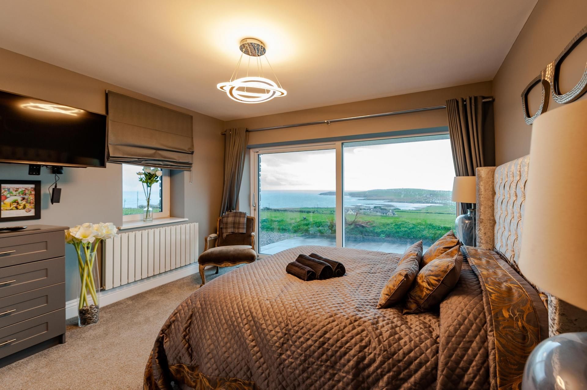 Unique self-catering rental commanding breath taking views from its privileged location overlooking the Old Head of Kinsale. Accessed via a private electronic gated entrance, this elegant 5-star home was interior designed with furnishings imported from 'Oka furniture store' in Chelsea, London.