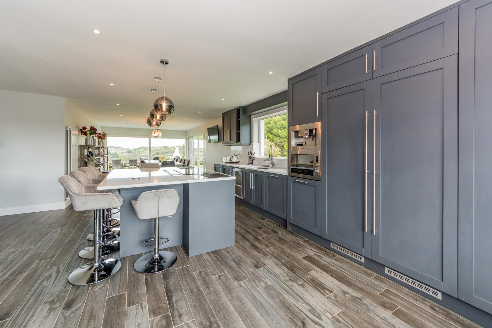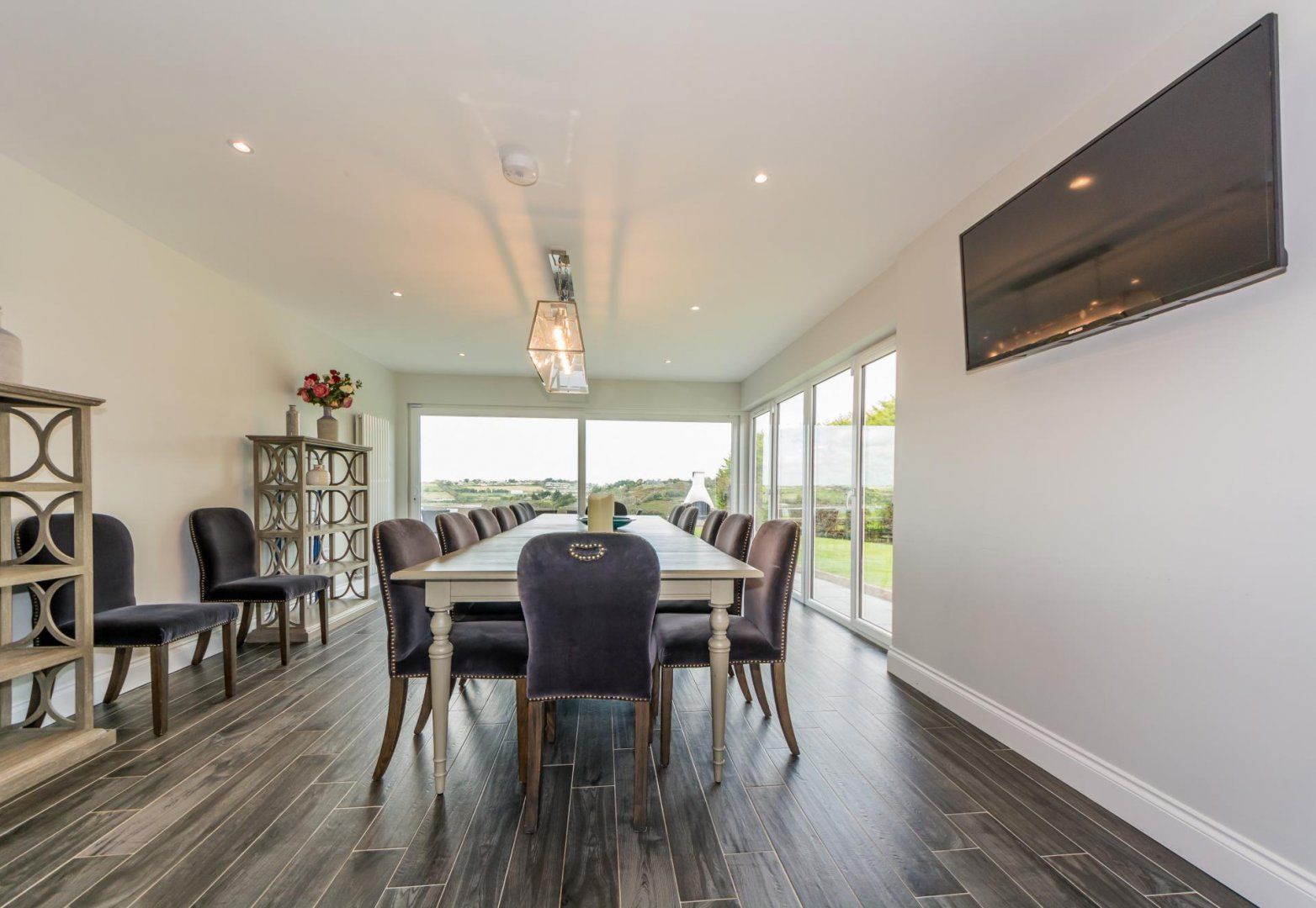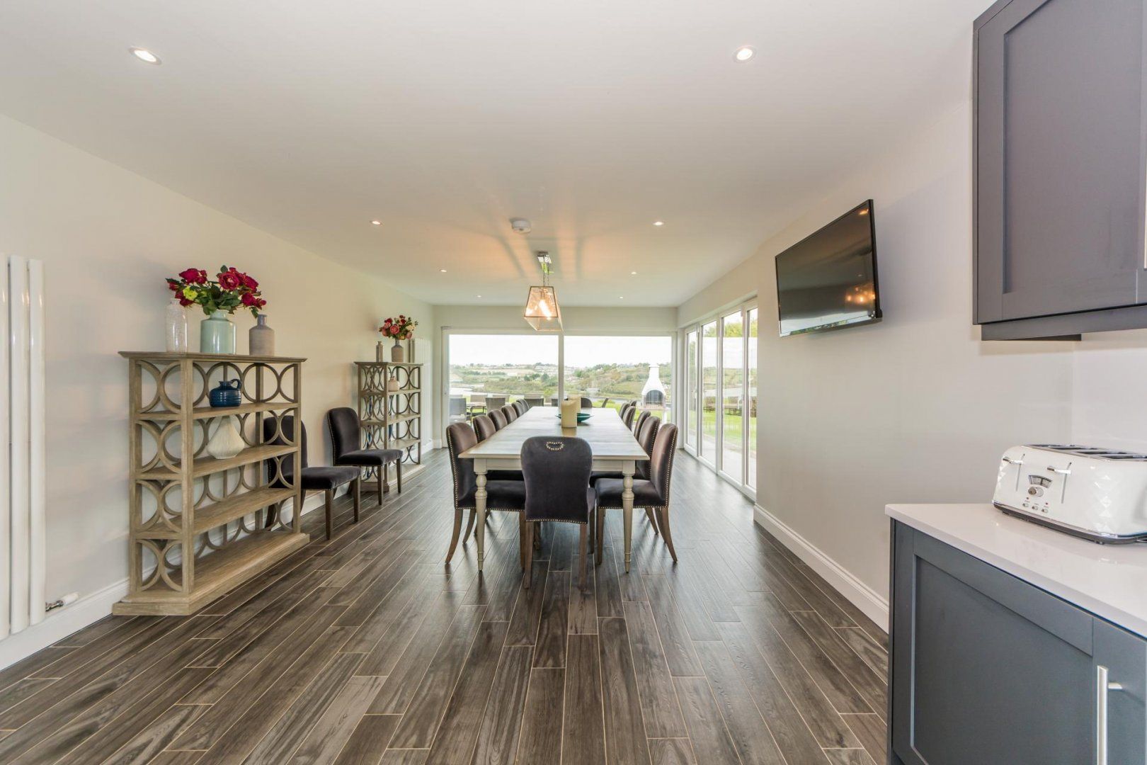 Marina Views Kinsale is an exquisite waterfront property with breath-taking views of the Bandon River, Kinsale Town and Kinsale Marina, all from the comfort of your private garden. The newly remodelled 5-star property is only a 3-minute car journey to the town centre and a 3-minute drive to Dock beach. The property is accessed via gates so you can guarantee security and safety especially for little ones running around the large 42ft climbing frame in the front garden along with a kid's trampoline. In the outside garage, there is a snooker table and tennis table for your entertainment.