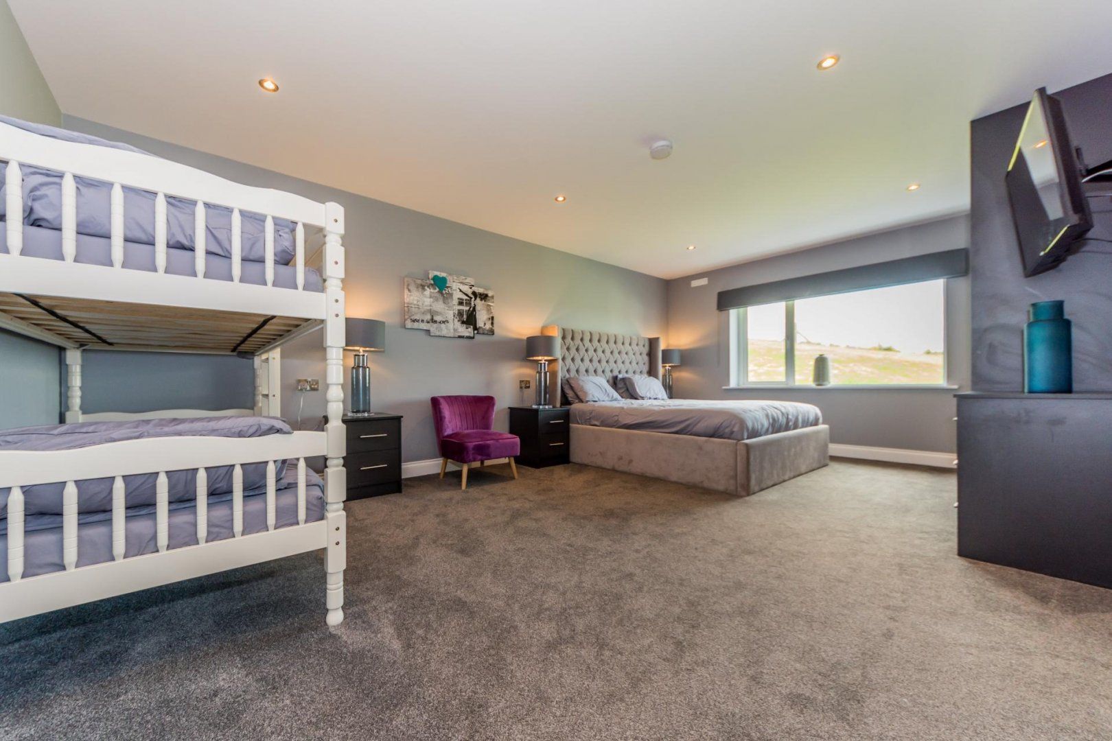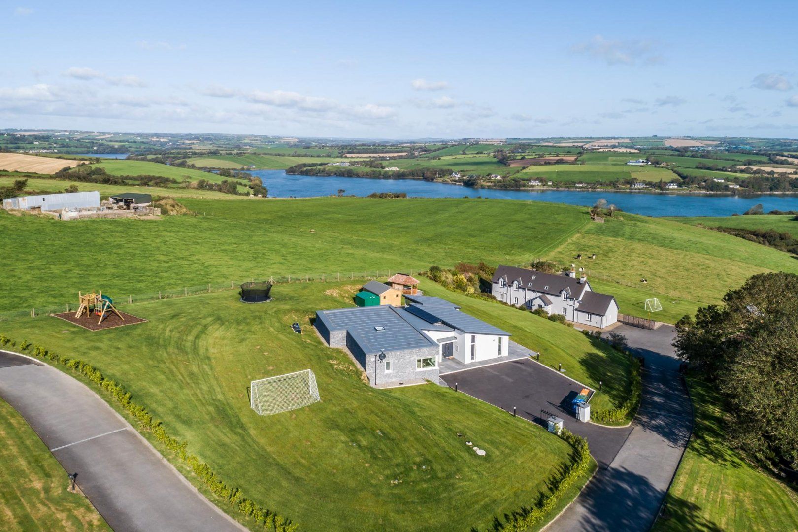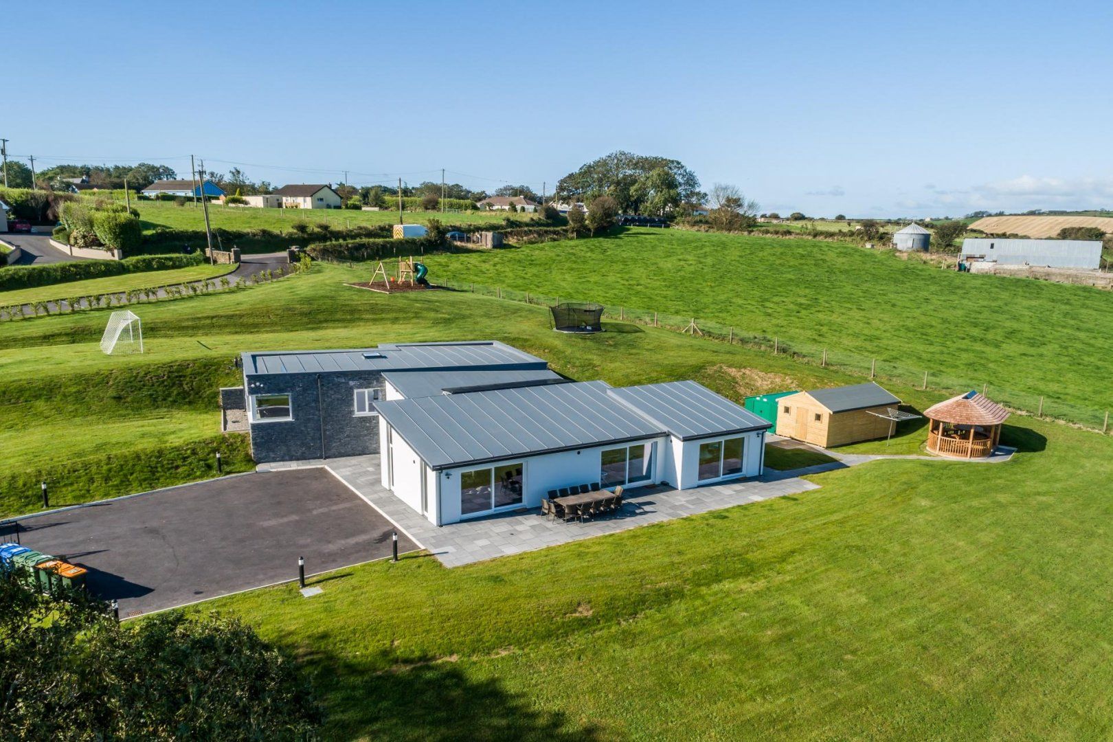 This new build property is perched in the lavish greenery of west cork with top-class amenities for adults and children alike. The spacious outdoor area consists of a gazebo that seats 18 people, an outside game room with a football table and a tennis table. Also included in the stunning garden is a climbing frame and trampoline for little ones to enjoy in the safety of your private garden.