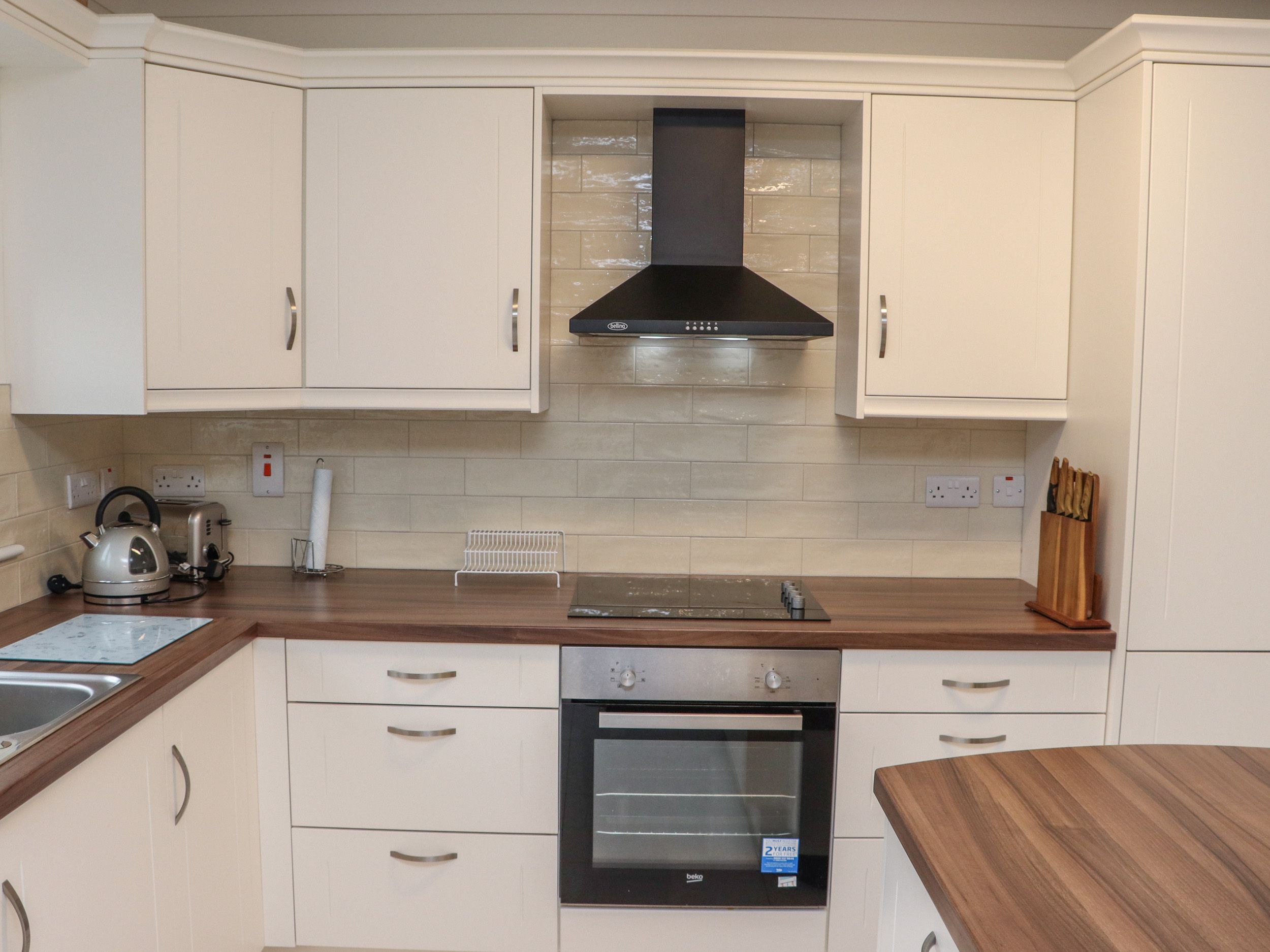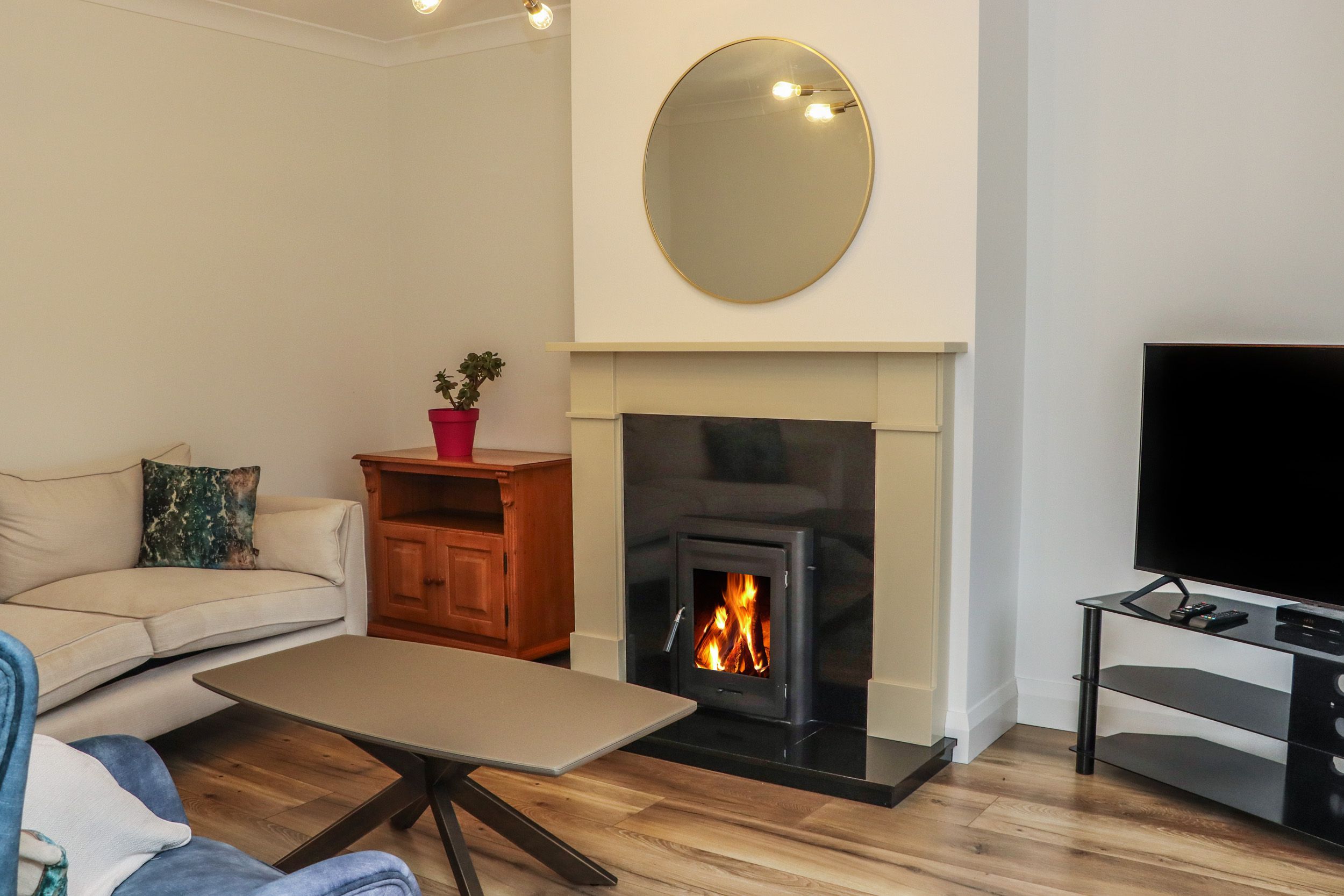 Underfloor heating. Electric oven and hob, microwave, fridge/freezer, washing machine, dishwasher, tumble dryer, kettle, toaster. Smart TV. Fuel and power inc. in rent. Bed linen and towels inc. in rent. Highchair and travel cot available on request. Private driveway parking for 2 cars. Enclosed rear garden with lawn, patio and furniture. Sorry, no pets and no smoking. Shop and pub 0.2 miles. Note: There is no starter pack included for the woodburning stove. Note: There is no WiFi in the property